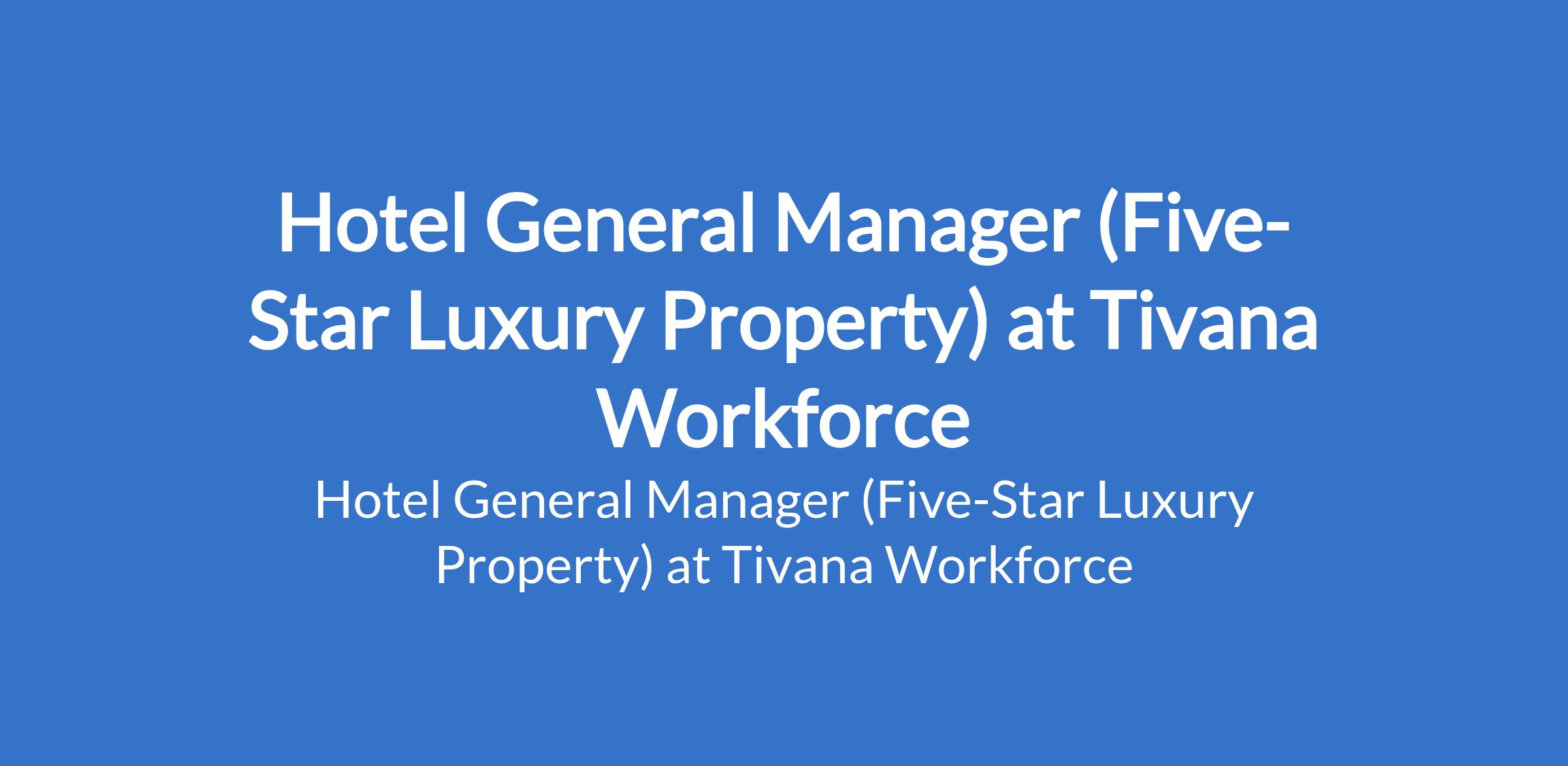 Tivana Workforce is recruiting to fill the position of: Hotel General Manager (Five-Star Luxury Property). The position is located in Abuja (FCT). Interested candidates should possess a Bachelor's Degree in Hospitality Management, Business Administration, or related field with 1020 years of progressive experience in hotel management.