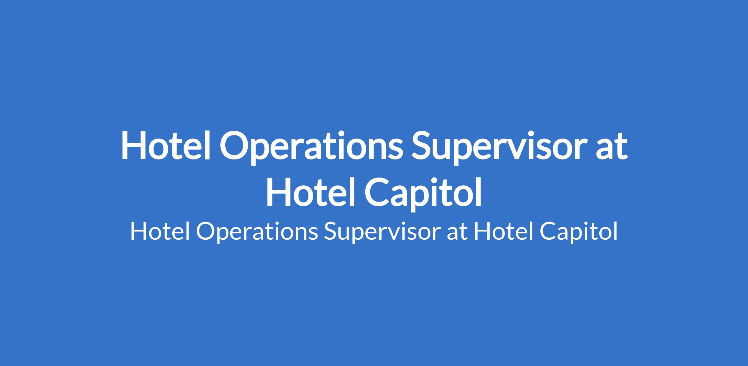Hotel Capitol is recruiting to fill the position of: Hotel Operations Supervisor. The position is located in Berger, Lagos State. Interested Candidates should possess an HND or B.Sc in Hospitality Management or related fields with 2 to 5 years experience in a supervisory role in a hotel (front desk or operations preferred).