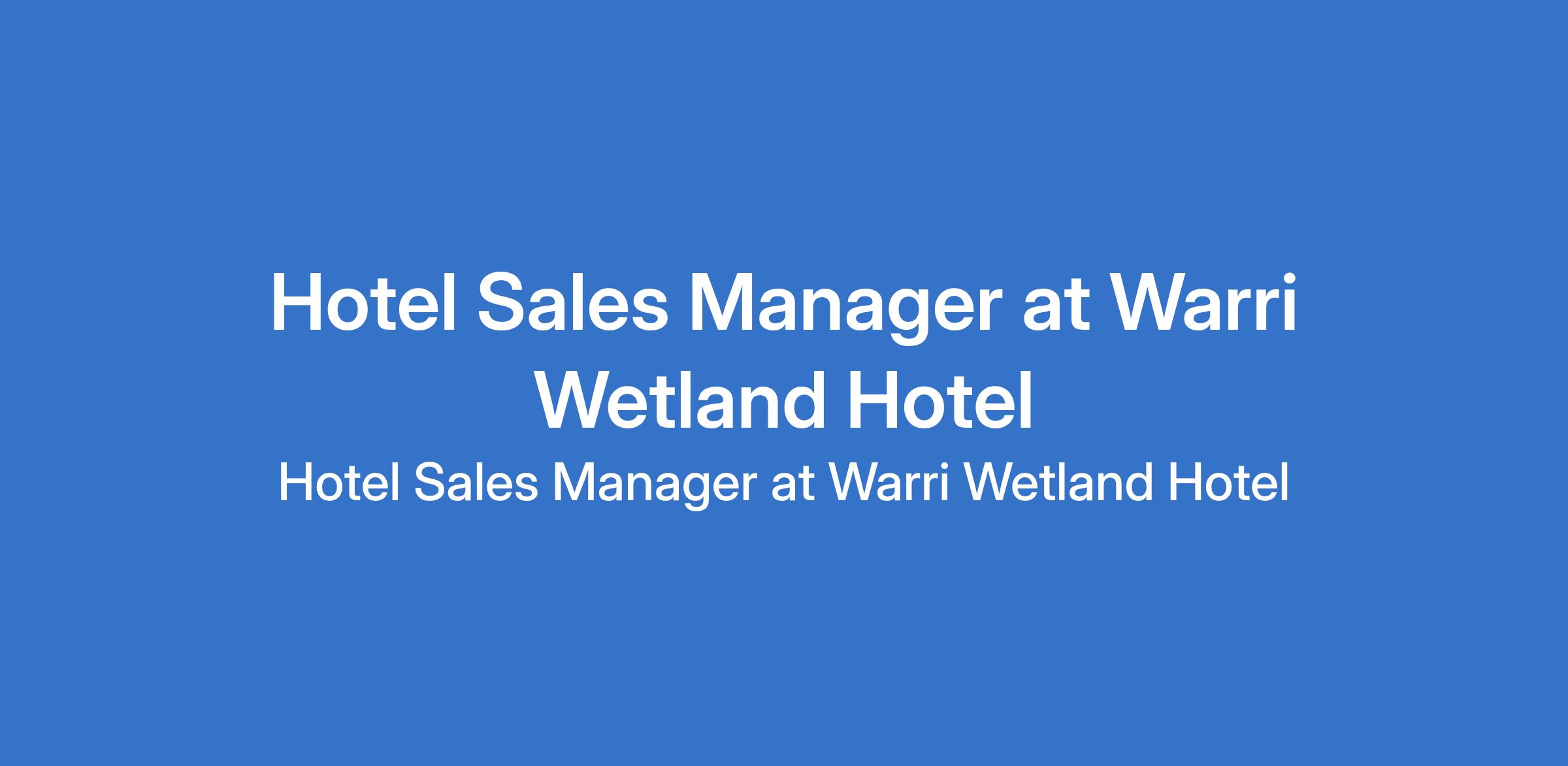 Hotel Sales Manager at Warri Wetland Hotel
