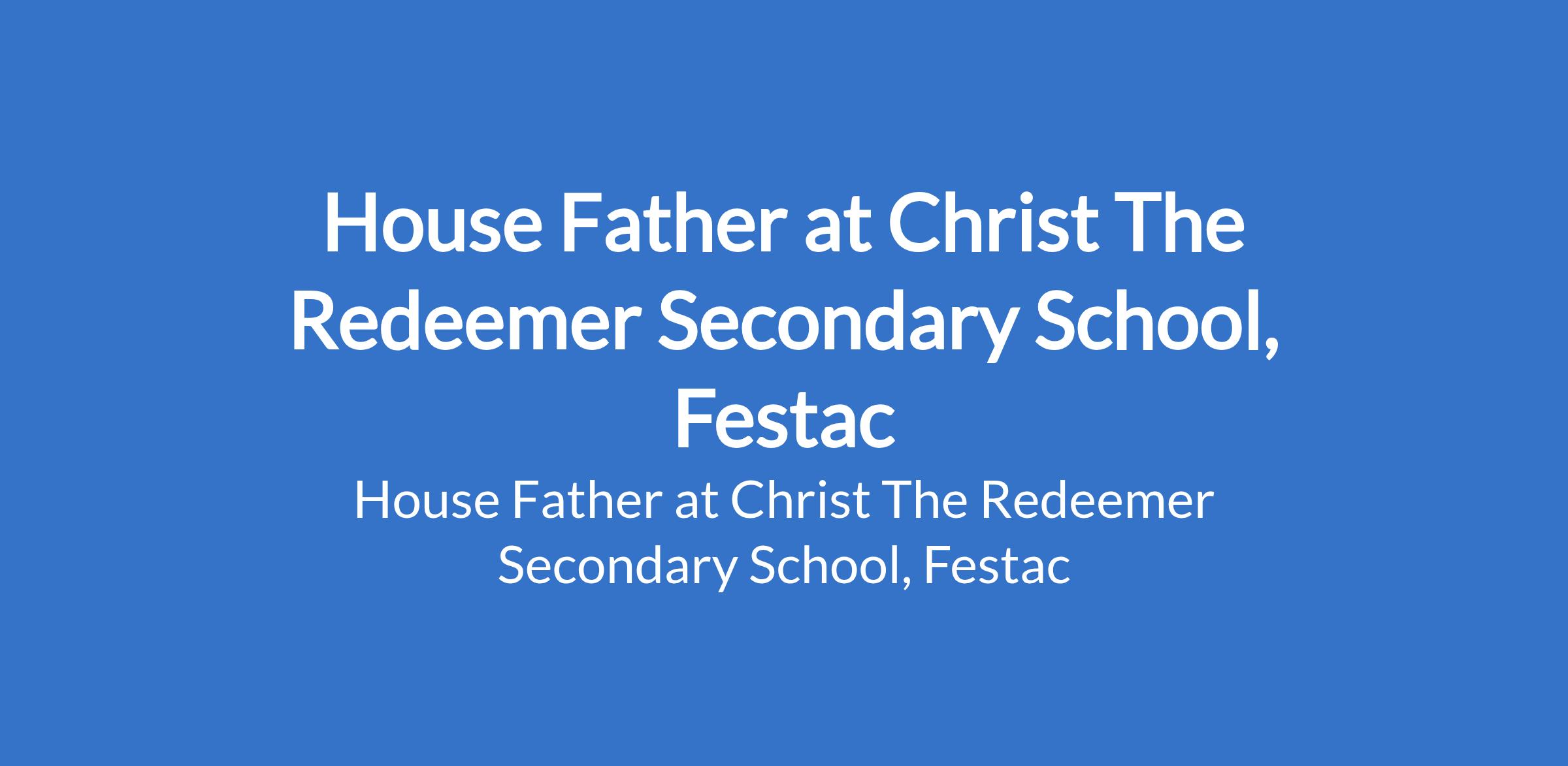 Christ The Redeemer Secondary School is recruiting to fill the position of: House Father. The position is located in Festac Town, Lagos State. Interested candidates should possess a B.Sc / B.A / B.Ed / HND with 1 2 years teaching experience in a recognized school.