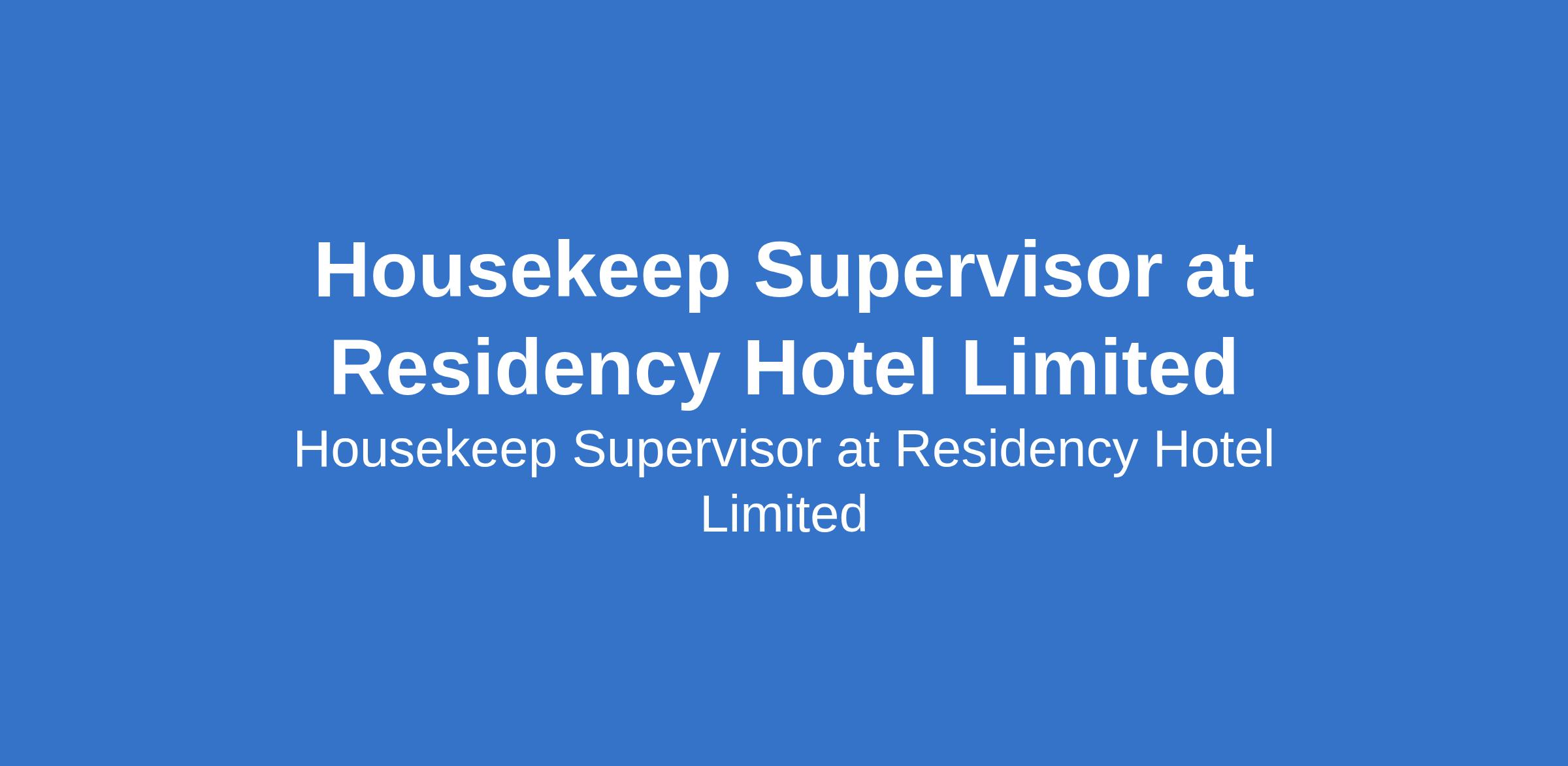Residency Hotel Limited is recruiting to fill the position of: Housekeep Supervisor. The position is located in Abuja (FCT). Salary: N100,000 monthly. Interested candidates should possess an HND / Degree with 3 to 5 years prior experience.