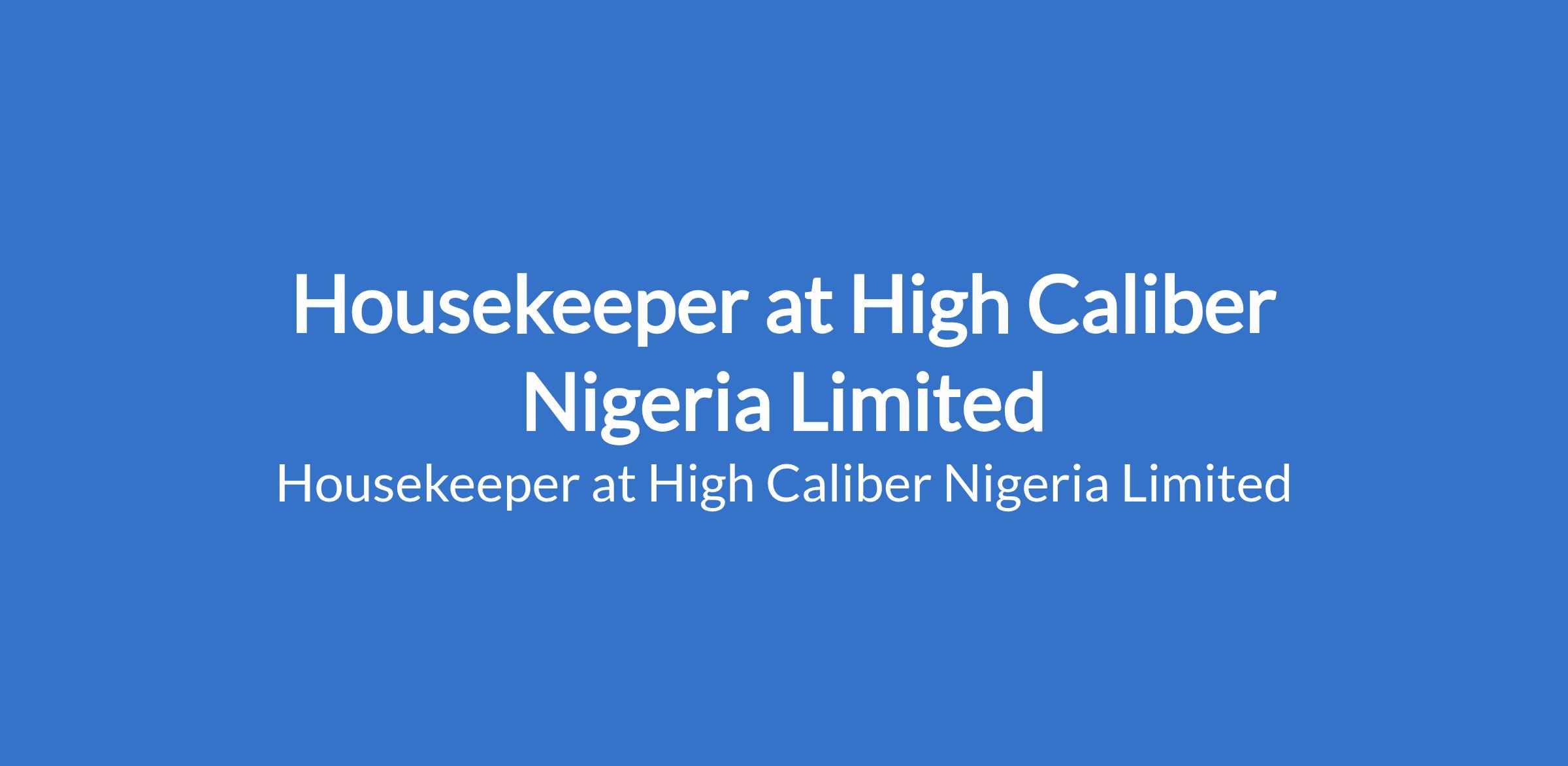 High Caliber Nigeria Limited is recruiting to fill the position of: Housekeeper. The position is located in Ikeja (GRA), Lagos State. Salary: N50,000 - N55,000 per month. Interested candidates should possess a minimum of SSCE qualification with previous cleaning or housekeeping experience is an advantage.