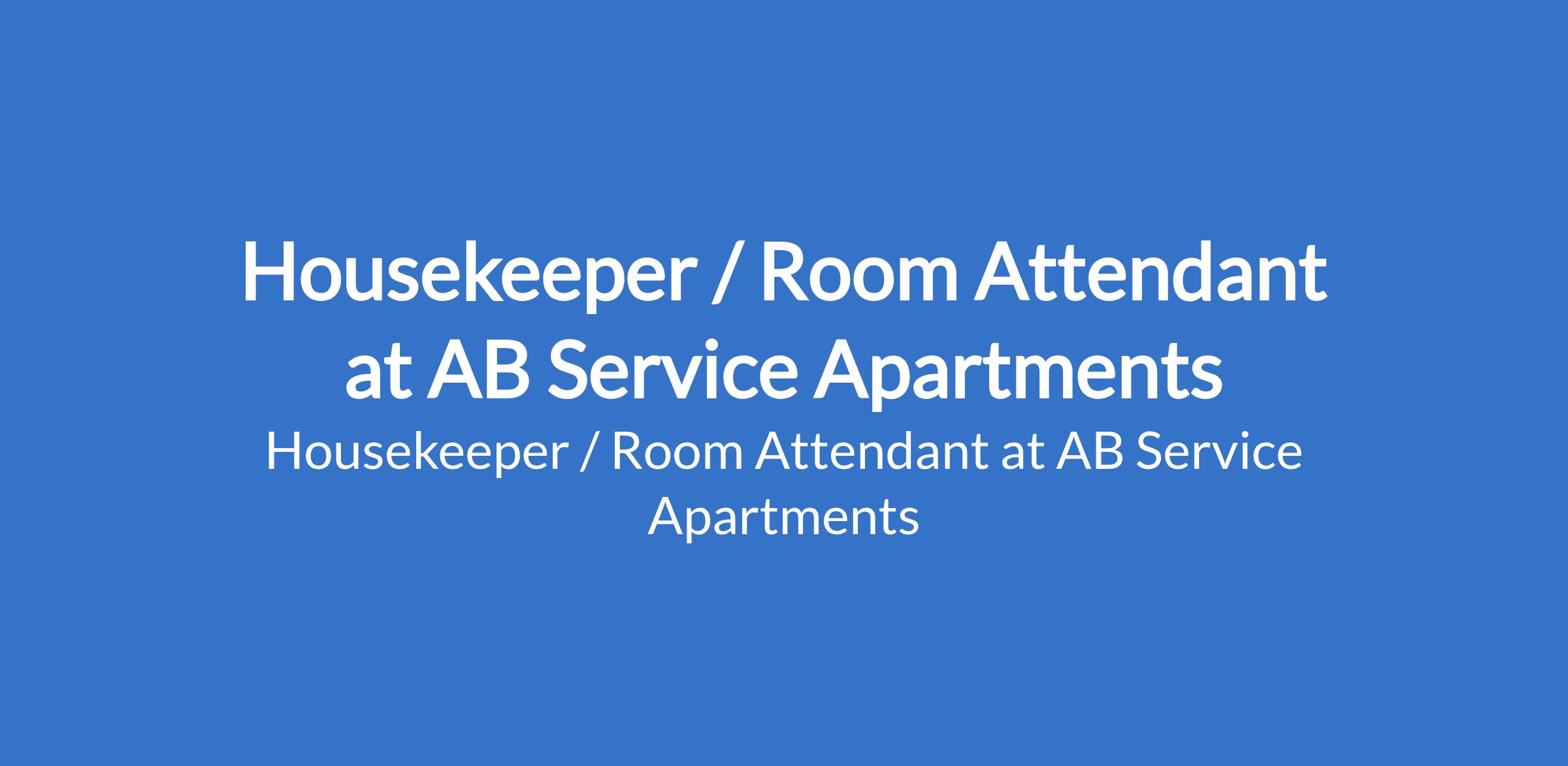 Housekeeper / Room Attendant at AB Service Apartments