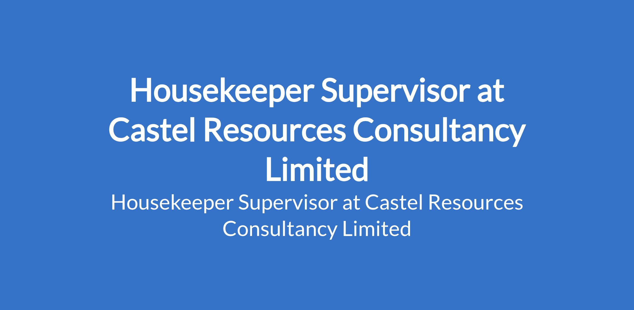 Castel Resources Consultancy Limited is recruiting to fill the position of: Housekeeper Supervisor. The position is located in Port Harcourt, Rivers State. Interested candidates should have proven experience as a Housekeeping Supervisor or similar role with HSE certification or relevant safety training.