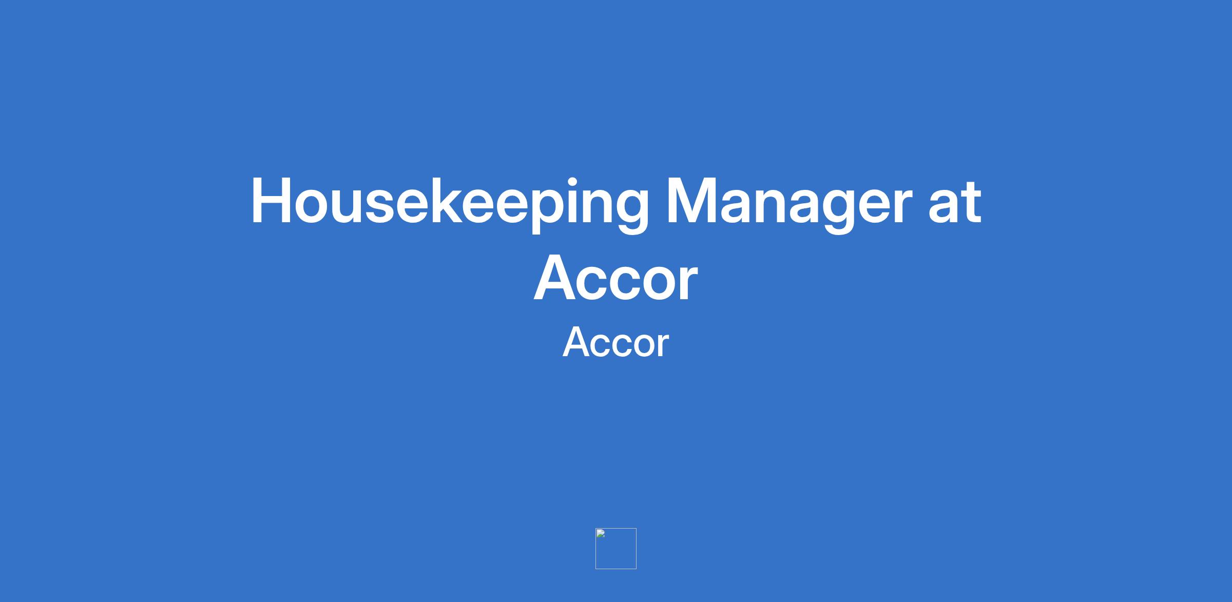 Housekeeping Manager at Accor