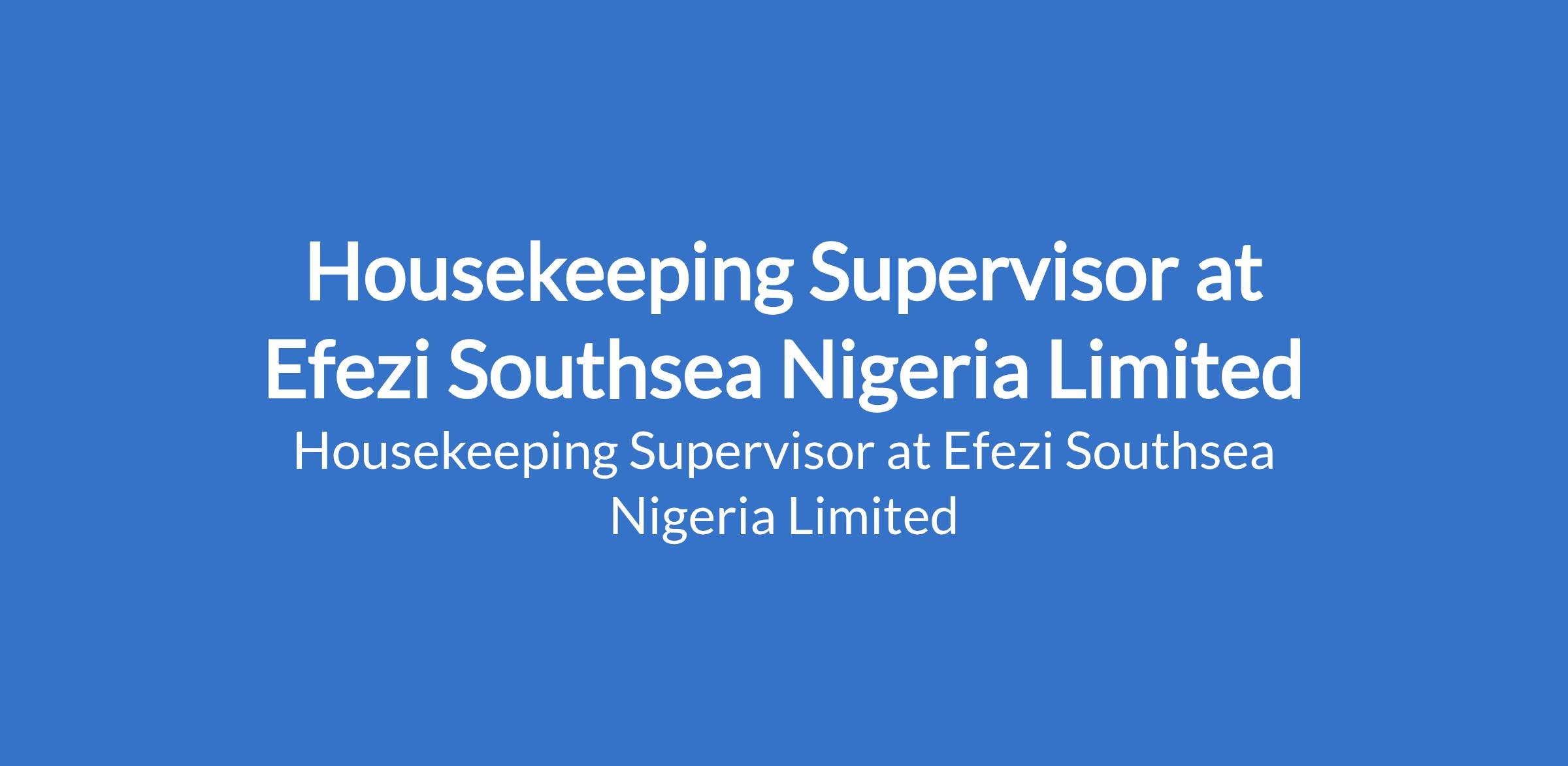 Housekeeping Supervisor at Efezi Southsea Nigeria Limited