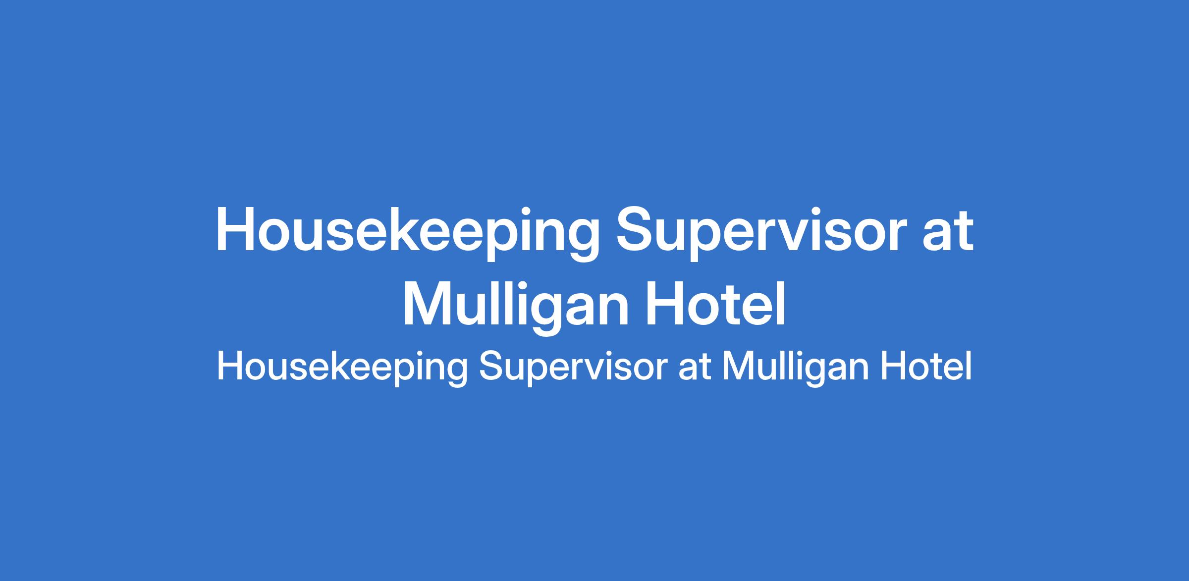 Mulligan Hotel is recruiting to fill the position of: Housekeeping Supervisor. The position is located in Yaba, Lagos State. Interested candidates should possess a minimum of HND / BSc in Hotel & Catering Management, Accountancy, Social Sciences or related field of study.