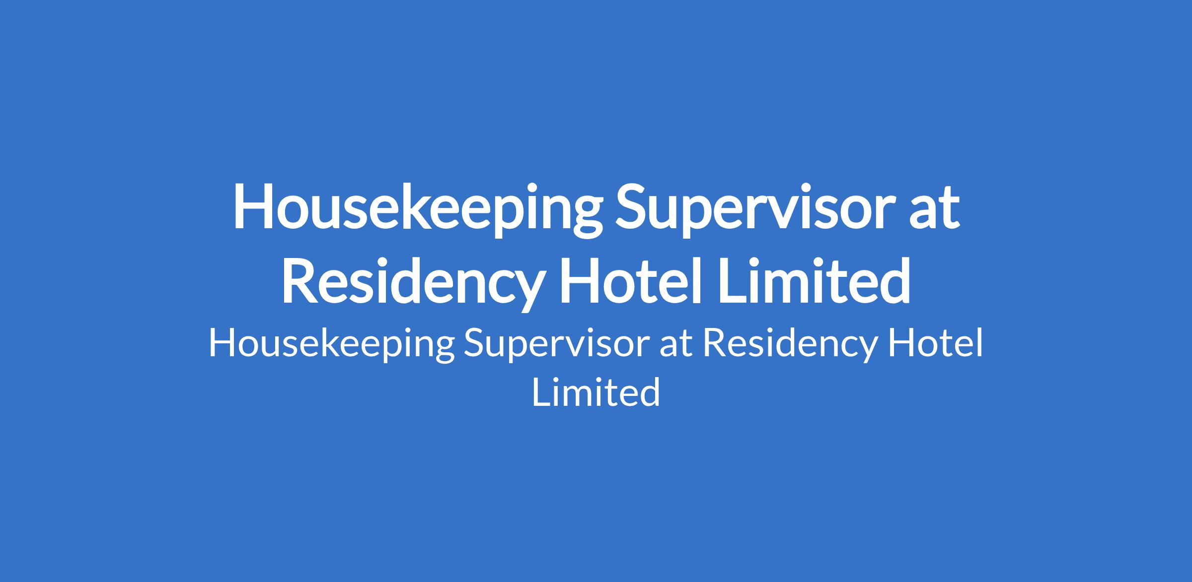 Residency Hotel Limited is recruiting to fill the position of: Housekeeping Supervisor. The position is located in Ogidi, Anambra State. Interested candidates should possess a BSc, OND, HND or its equivalent with work experience as a housekeeping supervisor or similar role.