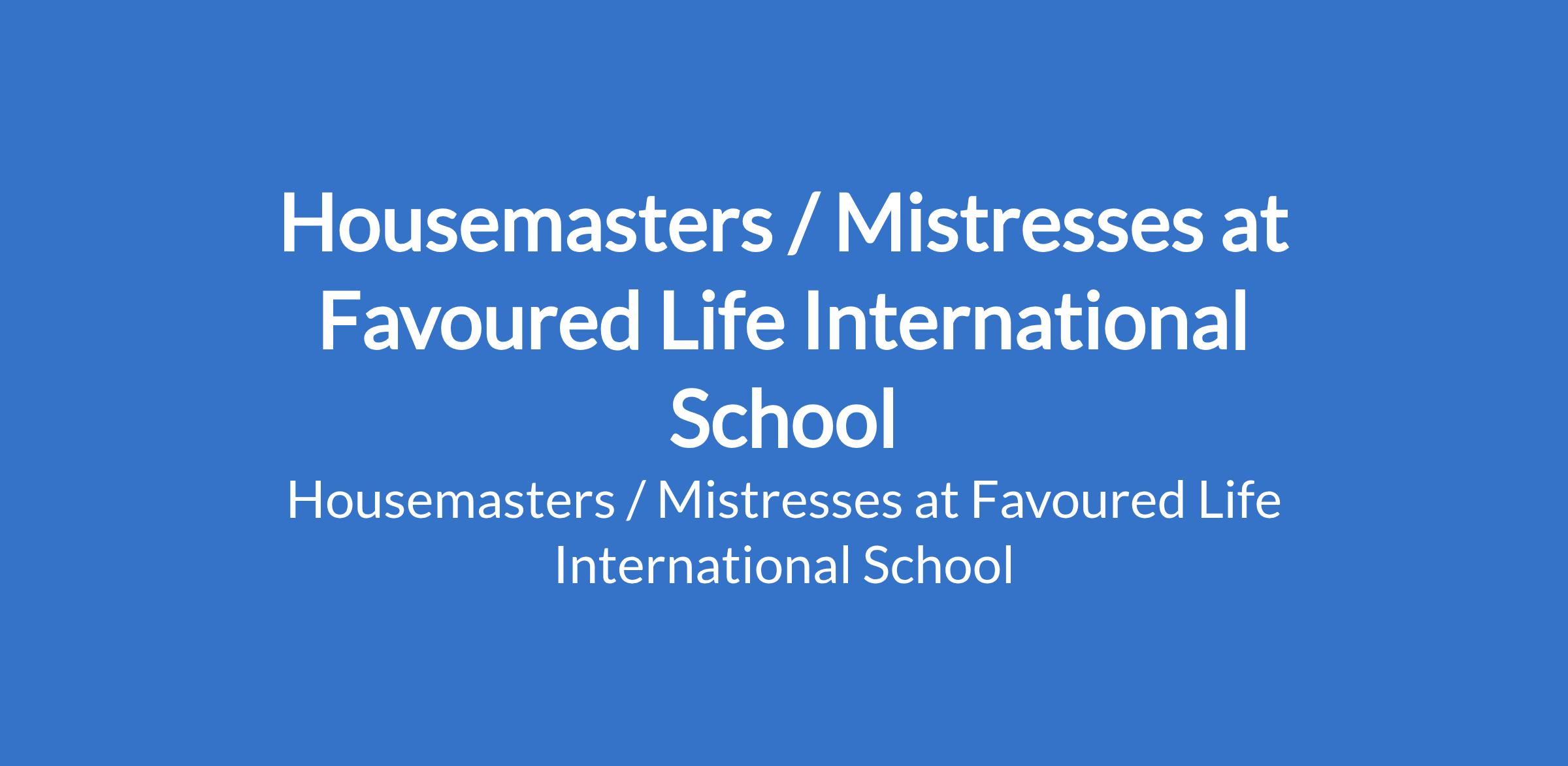 Favoured Life International School is recruiting to fill the position of: Housemaster / Mistress. The position is located in Surulere, Lagos State. Interested candidates should possess relevant qualifications and work experience.