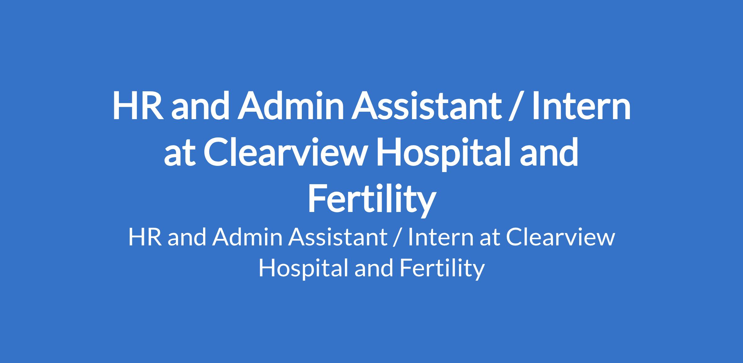 Clearview Hospital and Fertility is recruiting to fill the position of: HR and Admin Assistant / Intern. The position is located in Lekki Phase 1, Lagos State. Salary: N50,000 - N70,000 monthly. Interested candidates should possess an OND / HND / B.Sc in Human Resource Management, Business Administration, Psychology, or related field with 0-1 year experience.