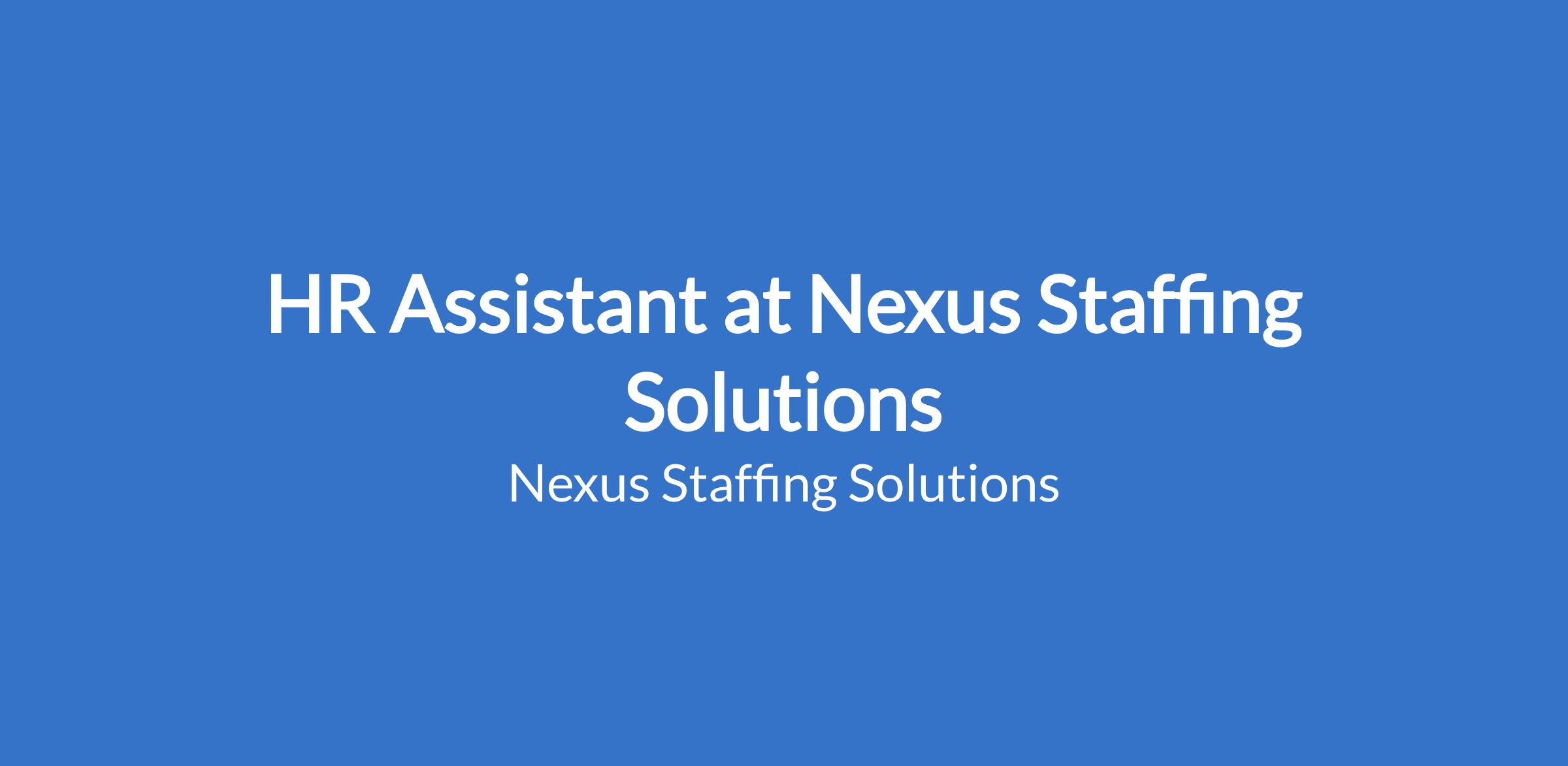Nexus Staffing Solutions is recruiting on behalf of its client for an experienced HR Assistant to support HR operations in a fast-paced work environment. The HR Assistant will support the HR function by handling recruitment coordination, employee records, HR administration, and ensuring smooth daily HR operations.
