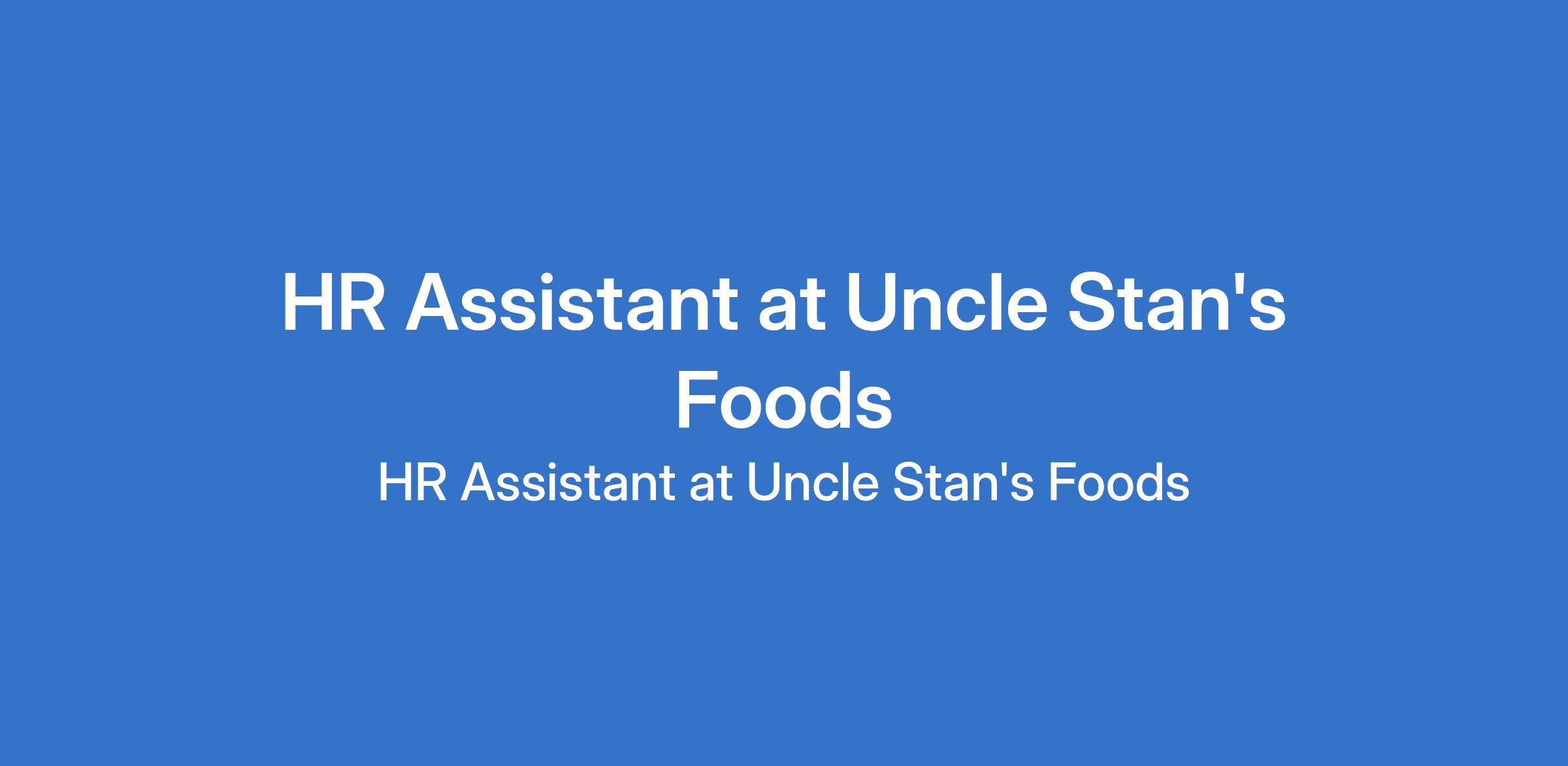 Uncle Stan's Foods is recruiting to fill the position of: HR Assistant. The position is located in Opebi & Surulere - Lagos State. Interested candidates should possess an HND / Bachelor's Degree in Human Resources or related fields with minimum of 1 year of experience in Human Resources.