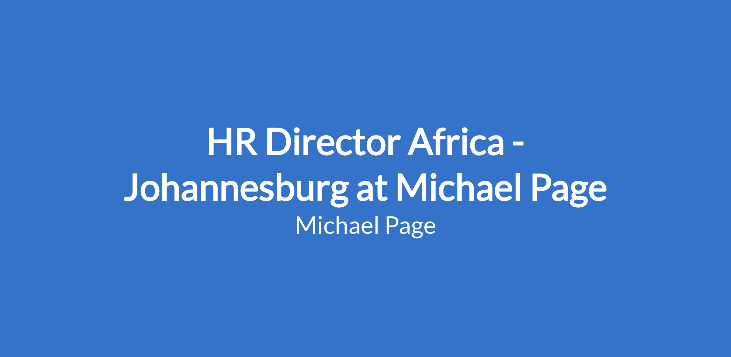 HR Director Africa - Johannesburg at Michael Page
