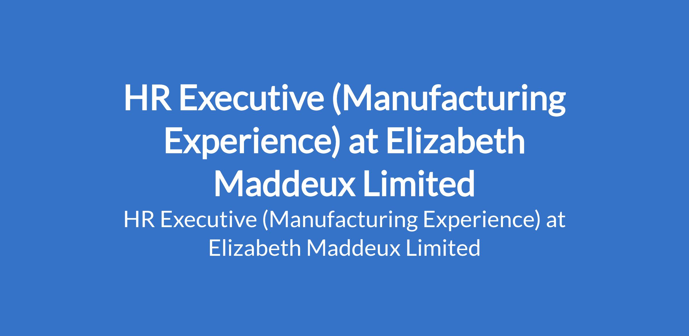 Elizabeth Maddeux Limited is recruiting to fill the position of: HR Executive (Manufacturing Experience). The position is located in Ikeja, Lagos State. Salary: N250,000 - N350,000 per month. The ideal candidate will be primarily responsible for managing end-to-end recruitment for assigned roles across functions. Interested candidates should possess a Bachelors Degree in HR, Business Administration, or related field (MBA / PGDM in Human Resources preferred) with 3-4 years of hands-on experience in Talent Acquisition or recruitment; experience hiring for multiple roles / functions is preferred.