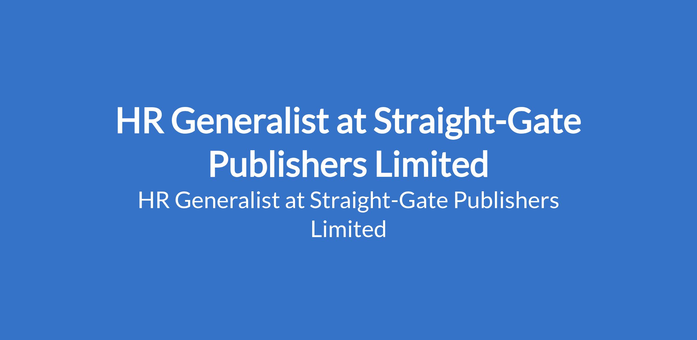 Straight-Gate Publishers Limited is recruiting to fill the position of: HR Generalist. The position is located in Ibadan North, Oyo State. Interested candidates should possess a Bachelors Degree in Human Resources, Business Administration, or related fields with 2 - 4 years relevant HR/Admin experience.