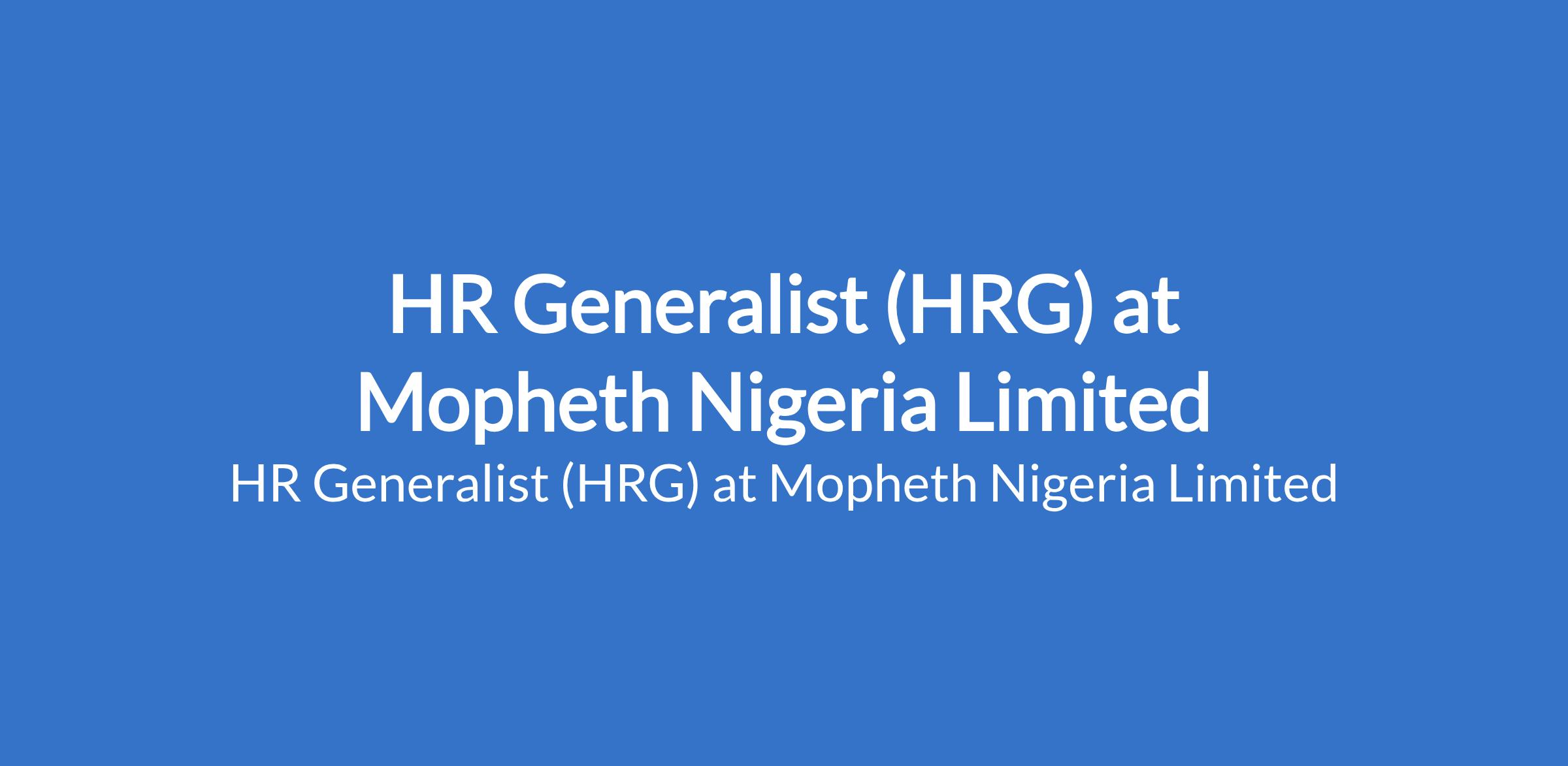 Mopheth Nigeria Limited is recruiting to fill the position of: HR Generalist (HRG). The position is located in Lekki / Victoria Island (VI), Lagos State. Interested candidates should possess a Bachelors Degree in Human Resources, Business Administration, or related field; professional HR certification (e.g., CIPM, SHRM, or equivalent) is required with 35 years of experience as an HR Generalist or similar role.