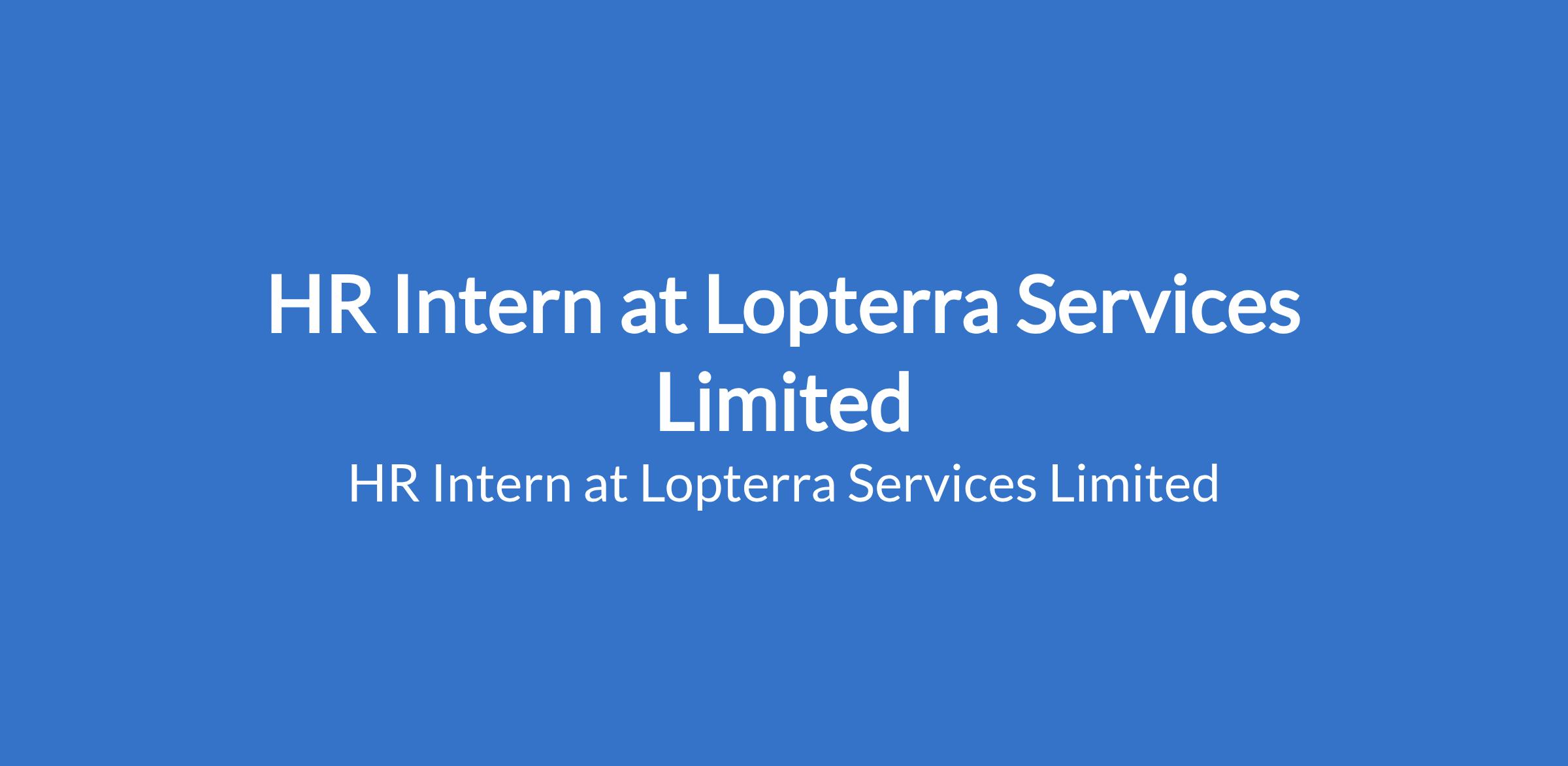 Lopterra Services Limited is recruiting to fill the position of: HR Intern. The position is located in Ikeja, Lagos State. Salary: N70,000 / month. Interested candidates should possess a Bachelor's Degree / HND in Human Resources, Business Administration, or a related field.