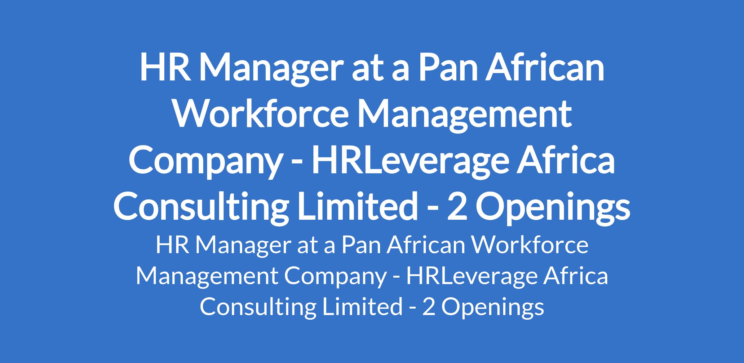 HRLeverage Africa Consulting Limited - Our client, a Pan African Workforce Management company is recruiting to fill the position of: HR Manager. The position is located in Abuja (FCT) and Lagos State. Interested candidates should possess a Bachelors Degree in Human Resources, Industrial Relations, Business Administration, or a related field, MBA or MSc. HRM is an advantage, with 6 8 years of progressive HR experience.
