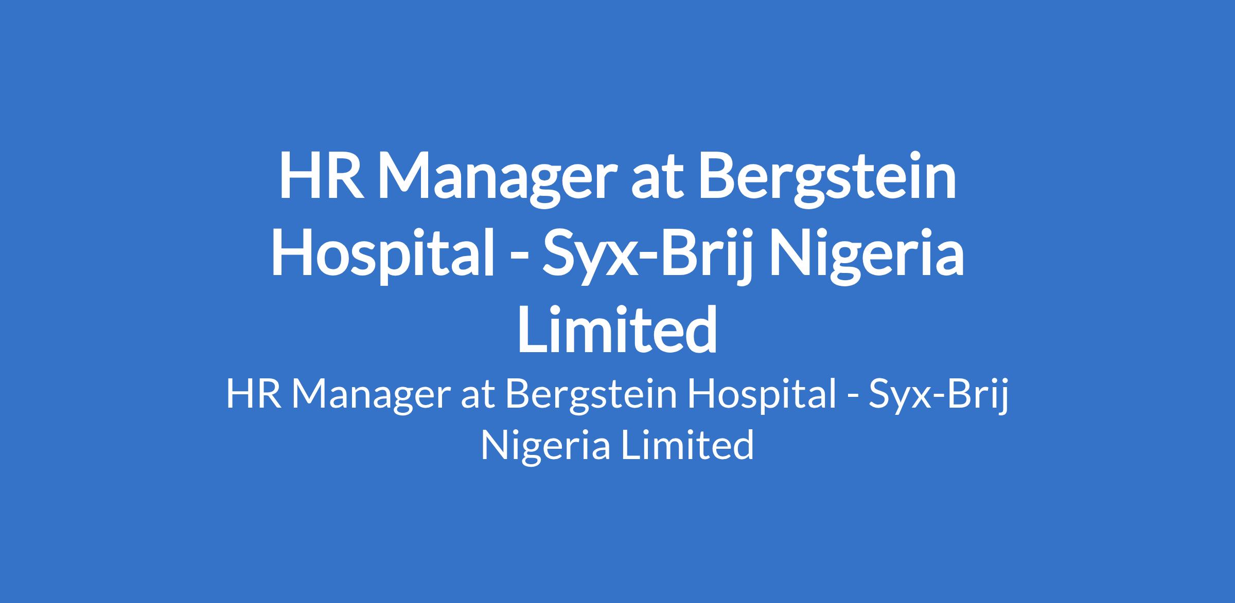 Syx-Brij Nigeria Limited - Our client, Bergstein Hospital, is recruiting to fill the position of: HR Manager. The position is located in Ikorodu, Lagos State. Salary: N200,000 N300,000 per month. Interested candidates should possess a Bachelors Degree in Human Resource Management, Business Administration, or related field with 35 years of HR management experience, preferably in a hospital or healthcare setting.
