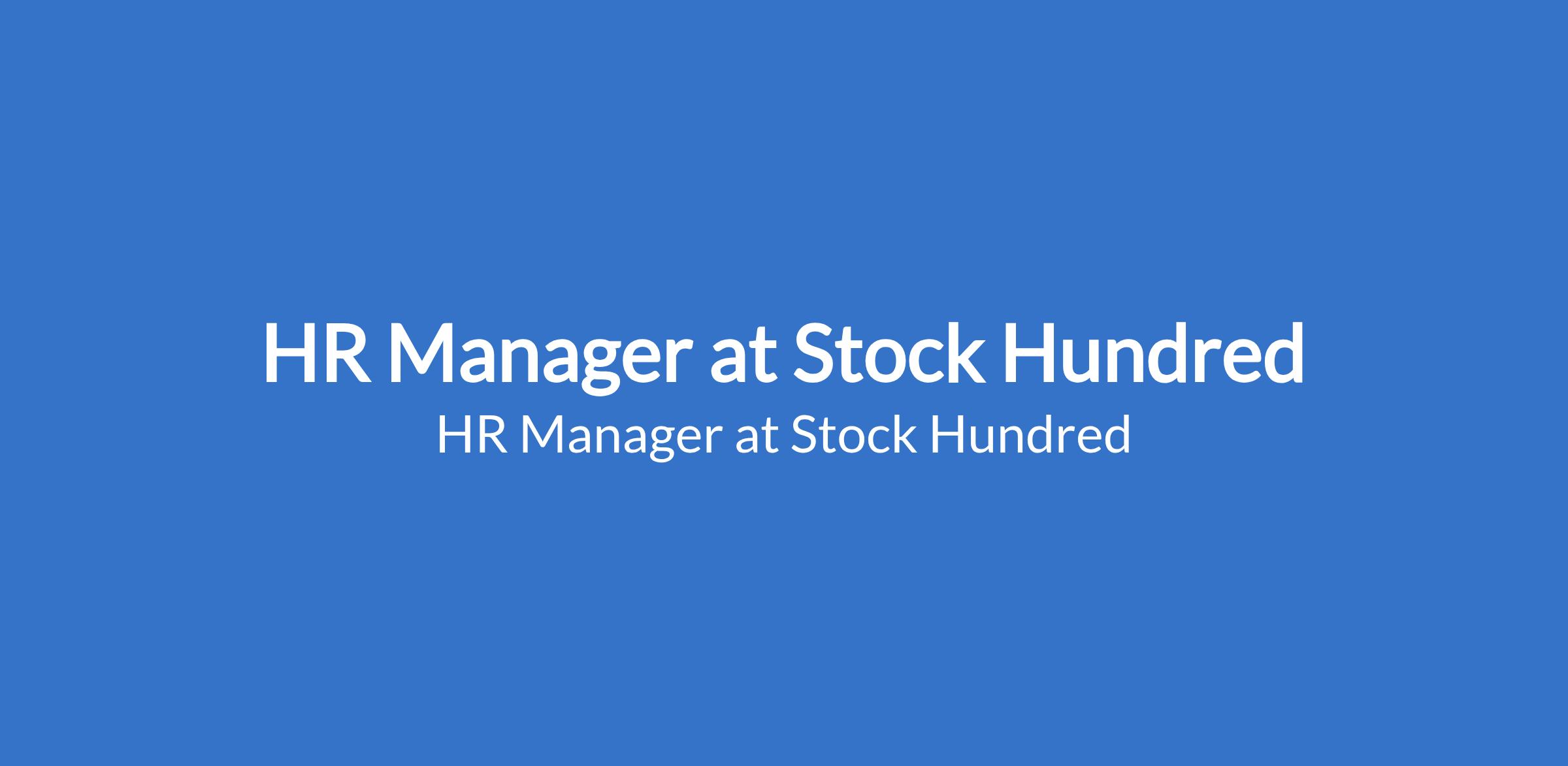 HR Manager at Stock Hundred