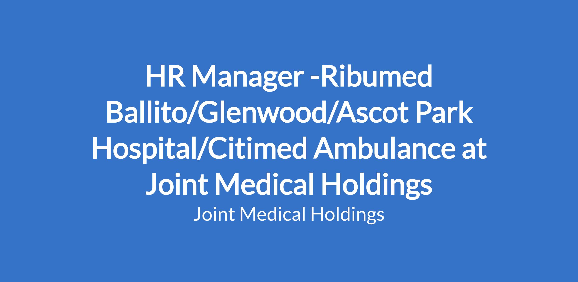 HR Manager -Ribumed Ballito/Glenwood/Ascot Park Hospital/Citimed Ambulance at Joint Medical Holdings