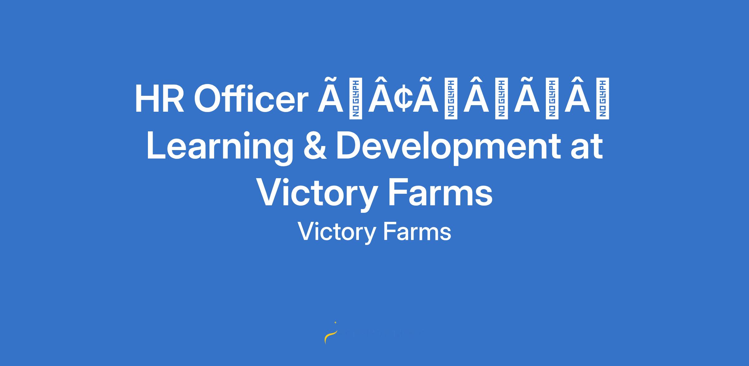 HR Officer âÃÂàLearning & Development at Victory Farms
