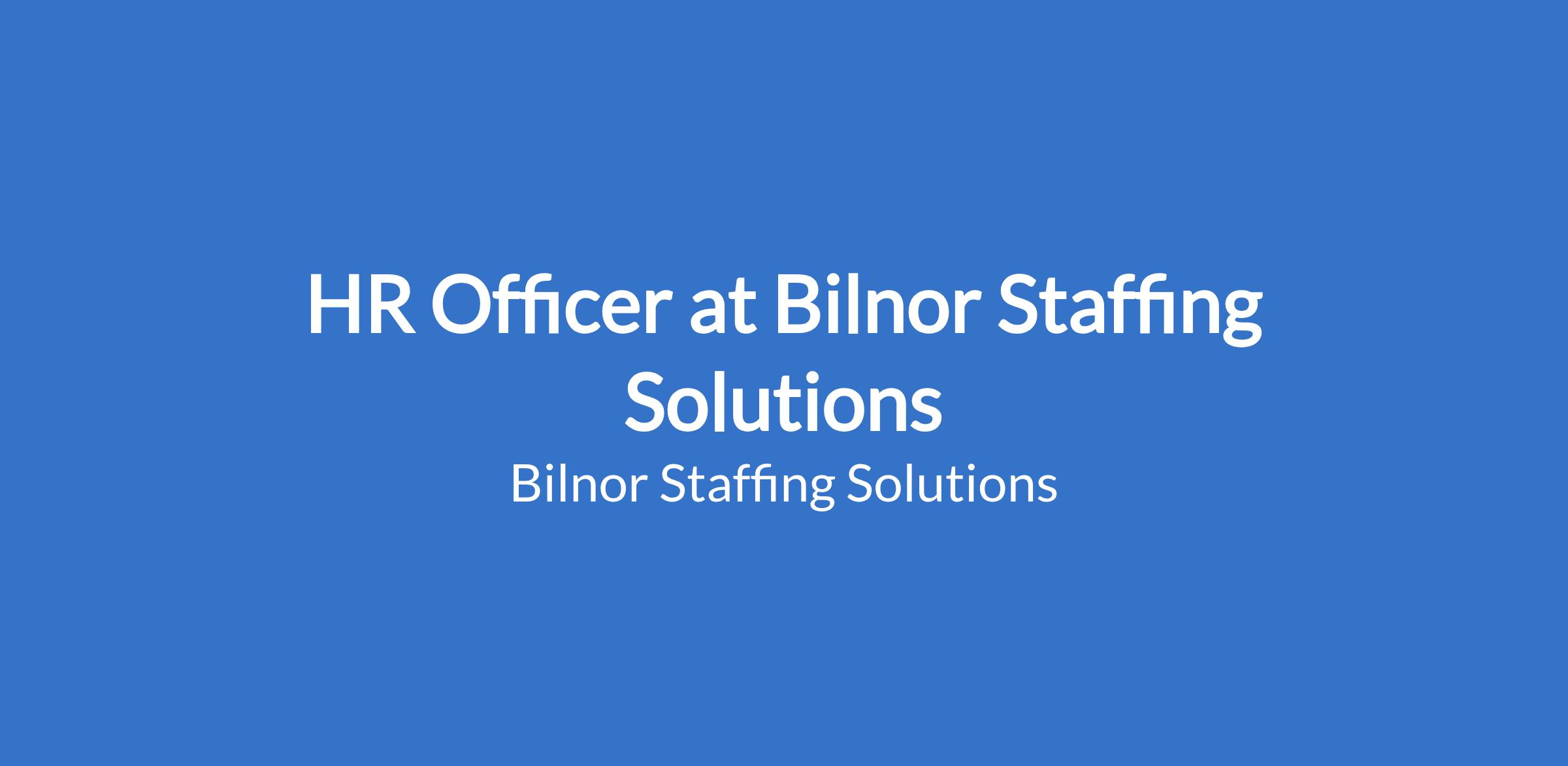 Bilnor Staffing Solutions client in the mining sector is looking for an HR OFFICER to join their team.