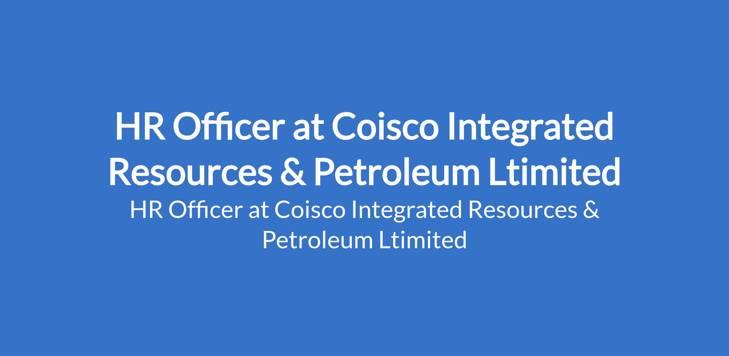 Coisco Integrated Resources & Petroleum Limited is recruiting to fill the position of: HR Officer. The position is located in Ogbaku, Mbaitoli - Imo State. Interested candidates should possess a Bachelors Degree in Human Resources, Business Administration, Social Sciences, or a related field with 1 5 years relevant HR experience.