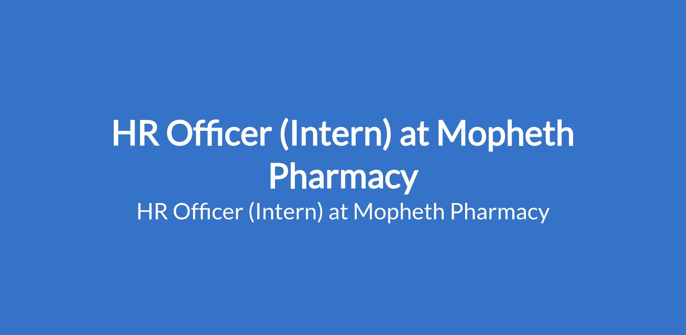 Mopheth Pharmacy is recruiting to fill the position of: HR Officer (Intern). The position is located in Lagos State. Interested candidates should possess a Degree in HR, Business Admin or related fields with a minimum of 2 years HR experience.