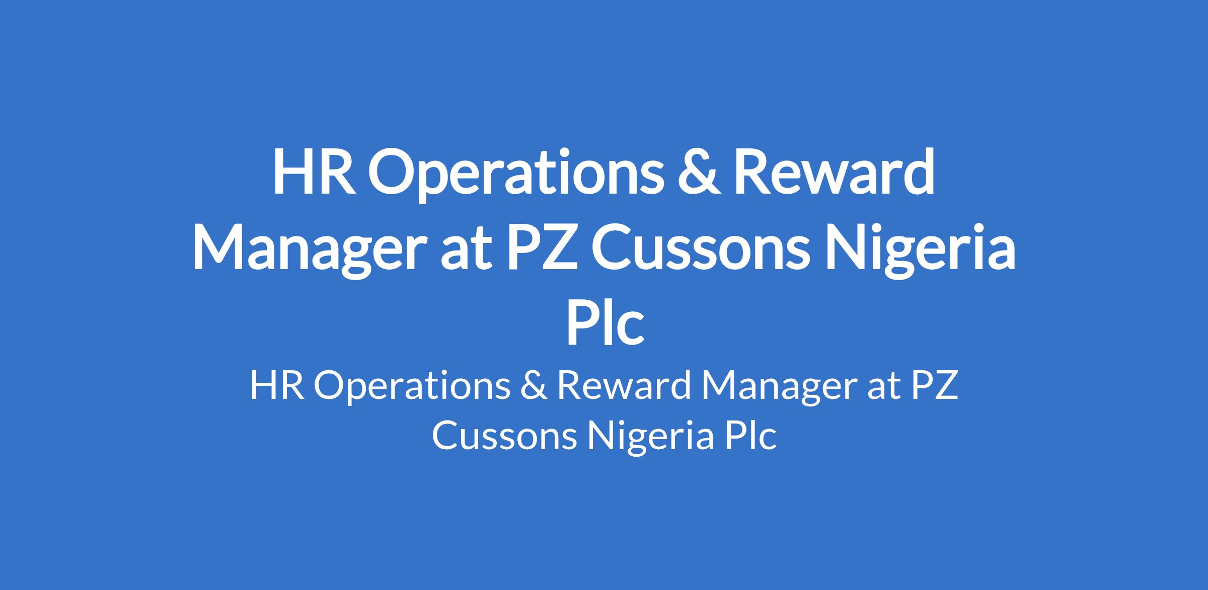 PZ Cussons Nigeria Plc is recruiting to fill the position of: HR Operations & Reward Manager. The position is located in Ilupeju, Lagos State. Interested candidates should possess a Bachelors Degree or Certifications in a relevant field with 5 8 years of progressive HR experience including at least 3 4 years in reward, compensation and benefits, or shared services roles.