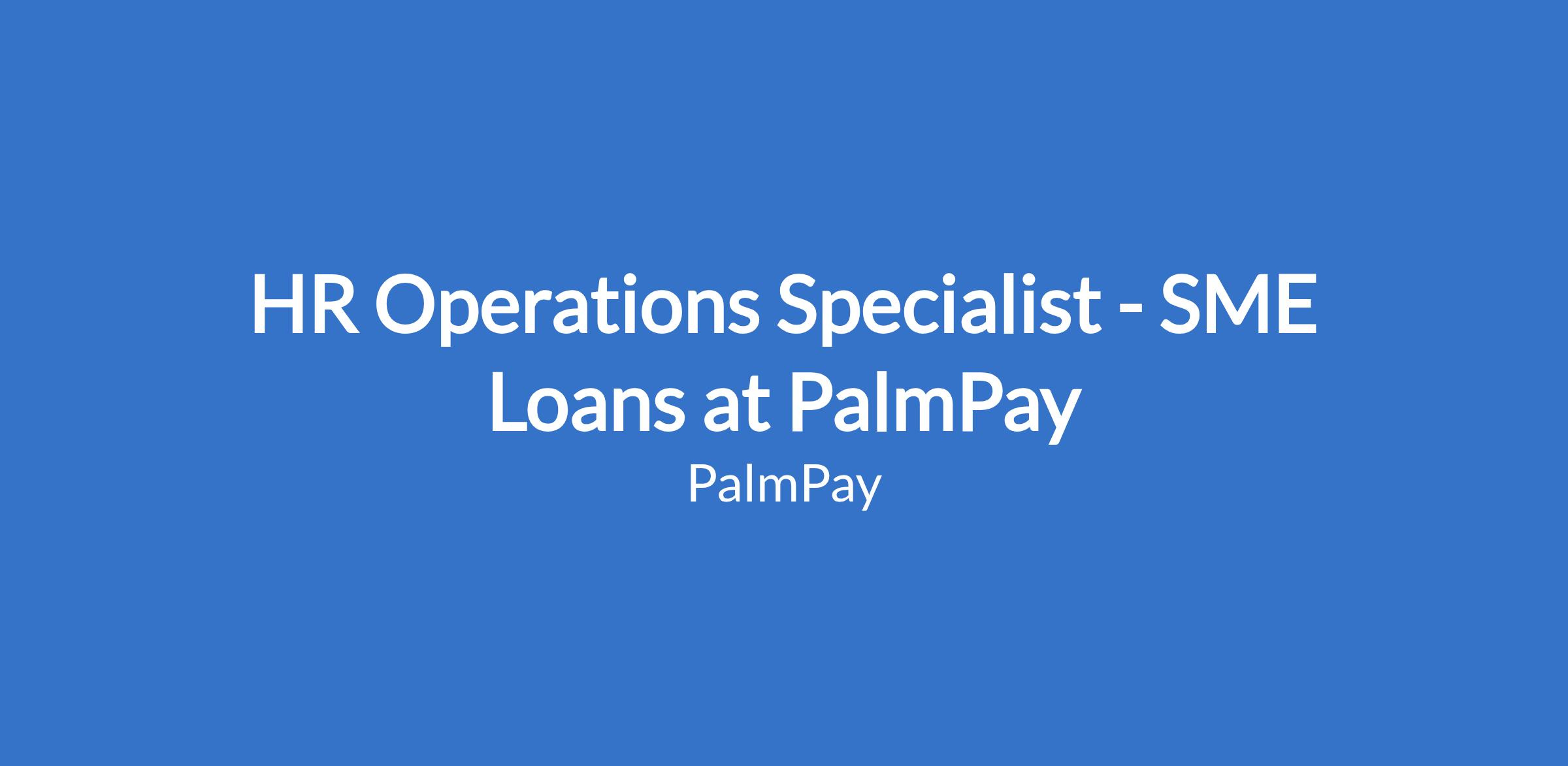 HR Operations Specialist - SME Loans at PalmPay