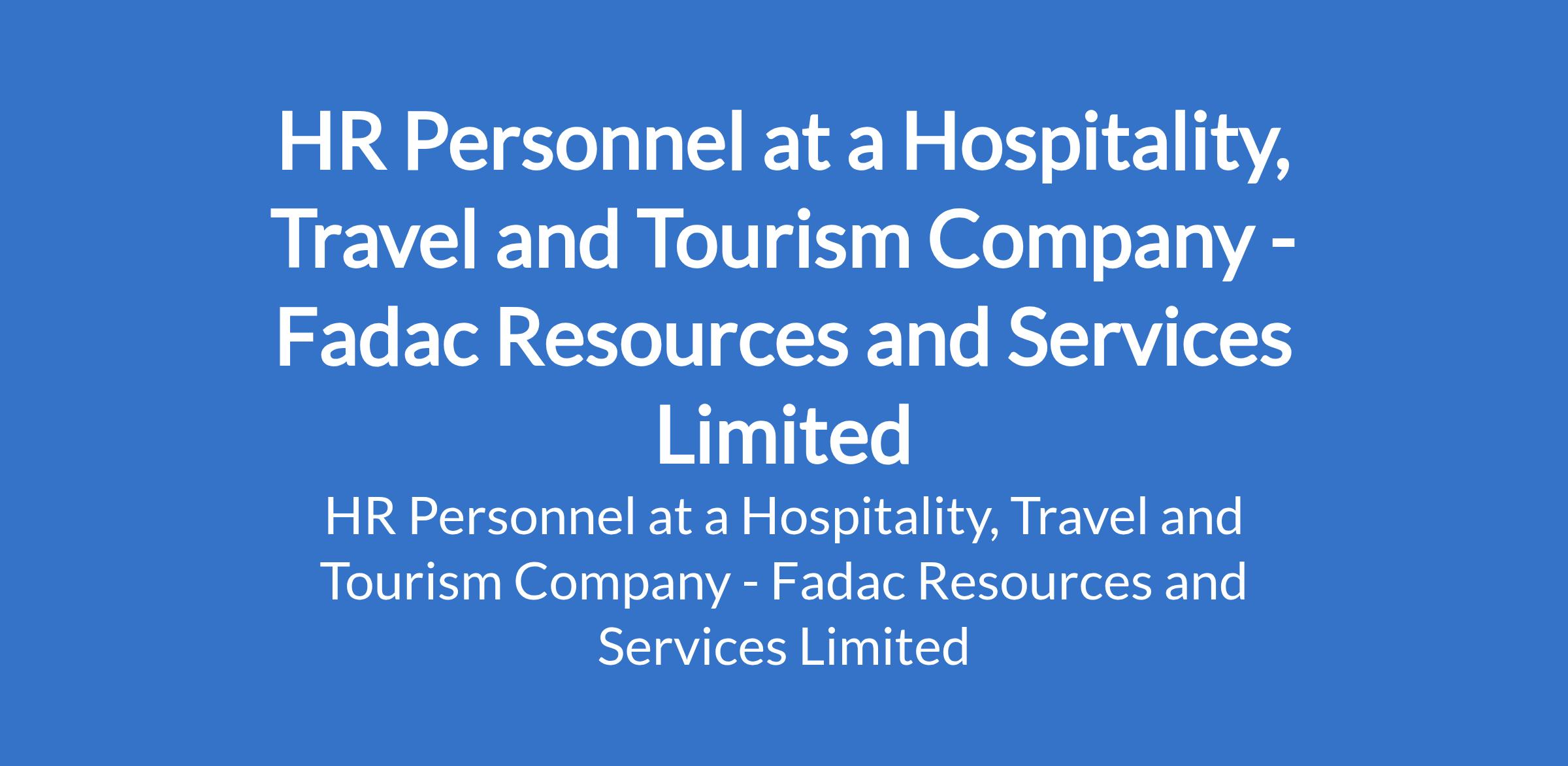 Fadac Resources and Services Limited - Our client, a Hospitality, Travel and Tourism Company is recruiting to fill the position of: HR Personnel. The position is located in Ikeja, Lagos State. Interested candidates should possess a Bachelors Degree in Human Resources or related fields with 3 - 5 years of proven working experience as a HR Manager or other HR Executive.