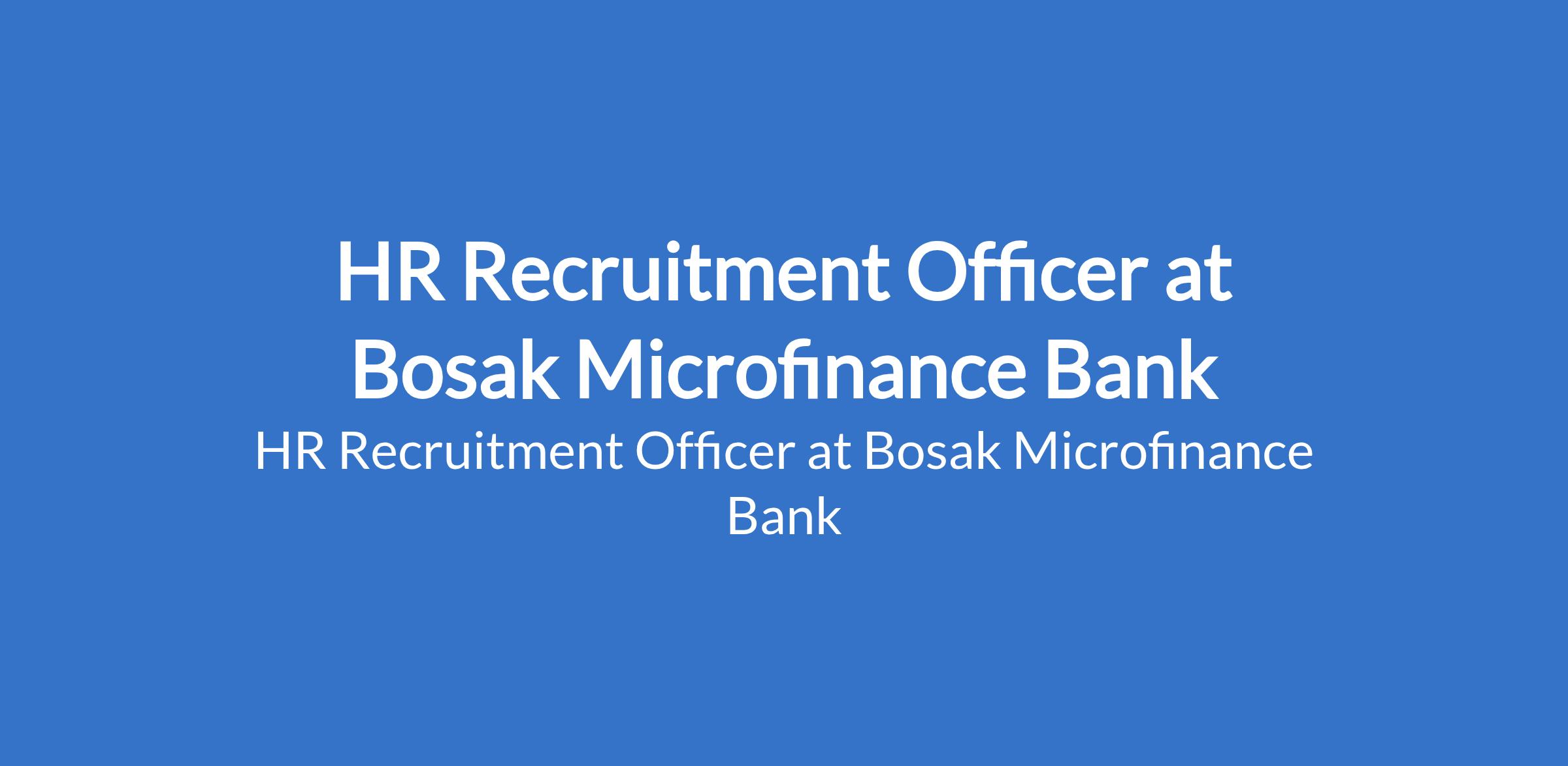 HR Recruitment Officer at Bosak Microfinance Bank