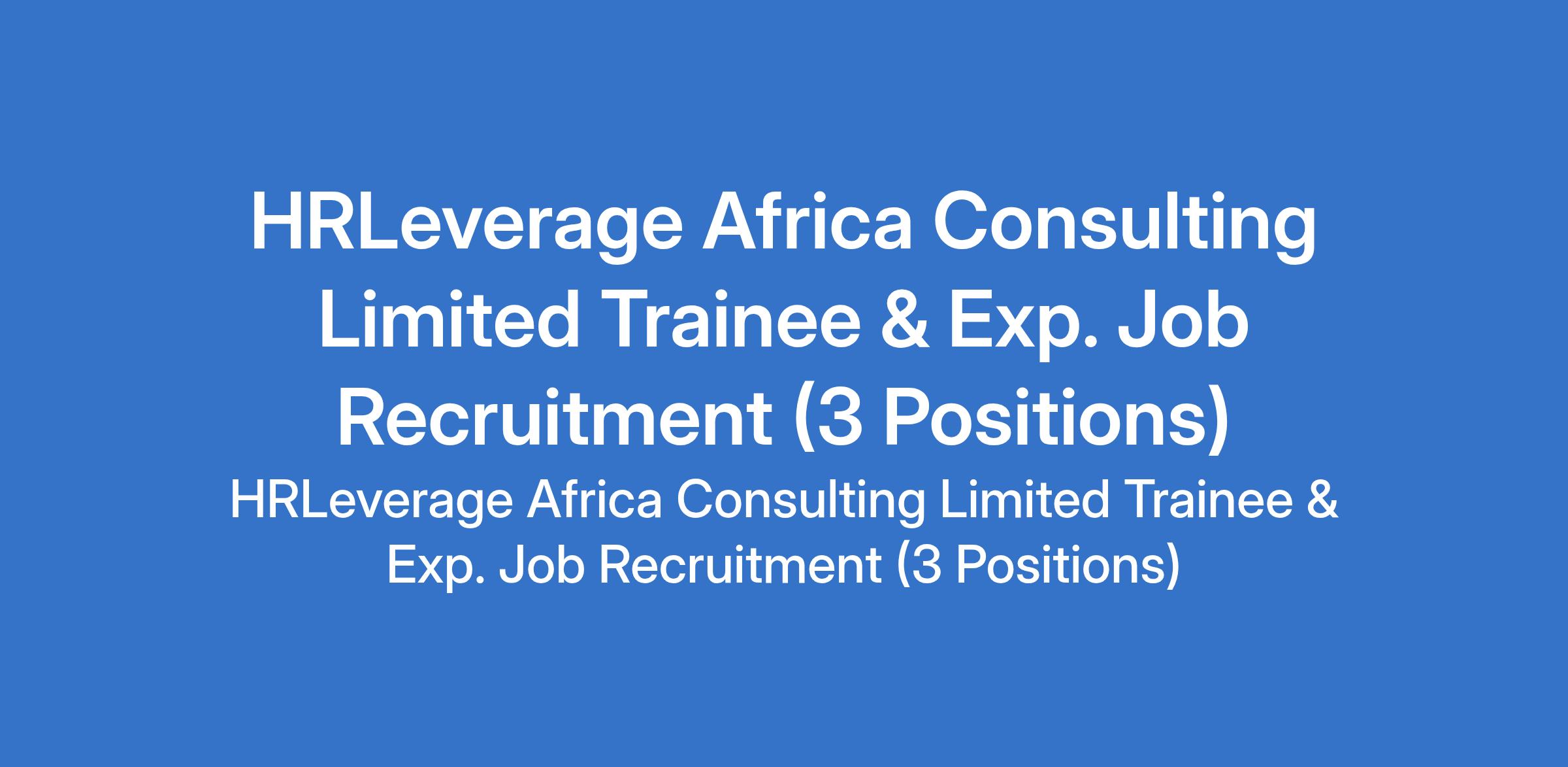 HRLeverage Africa Consulting Limited Trainee & Exp. Job Recruitment (3 Positions)