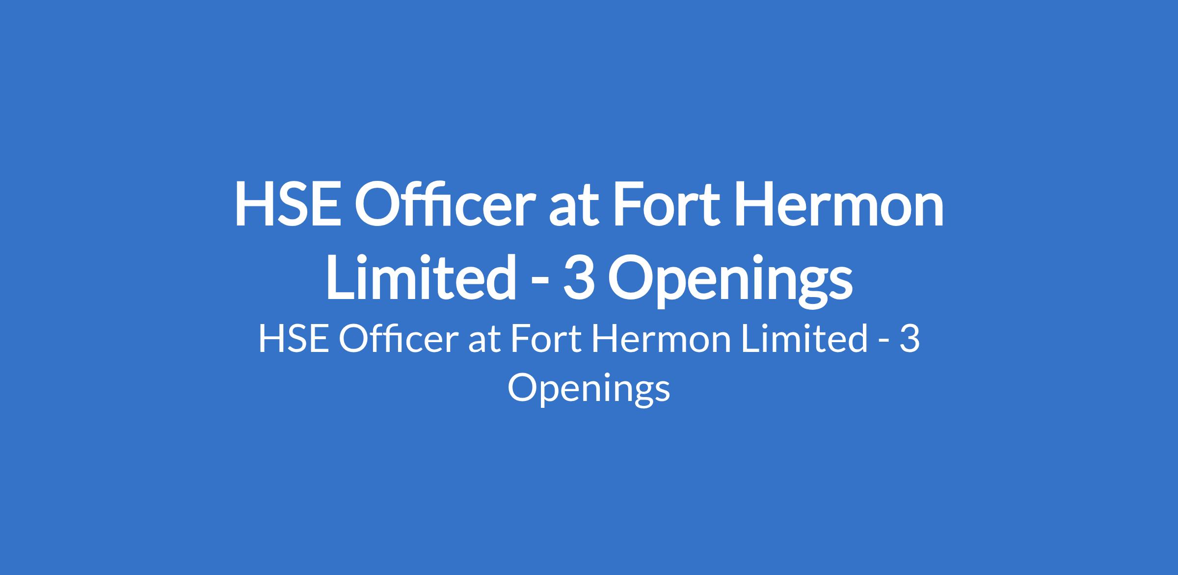 HSE Officer at Fort Hermon Limited - 3 Openings