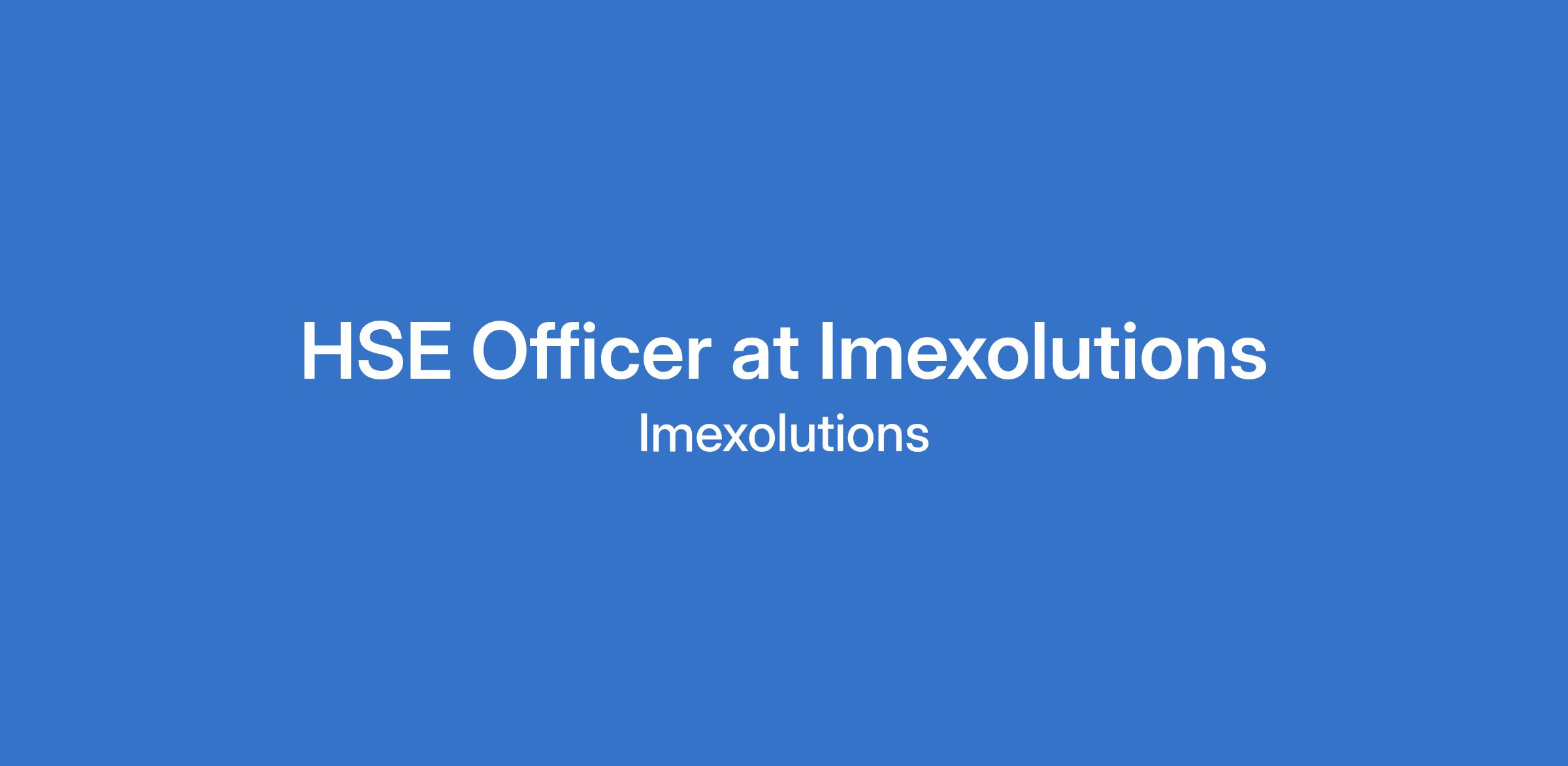 Imexolutions is looking for an HSE Officer to oversee Health, Safety & Environmental compliance across our engineering operations.