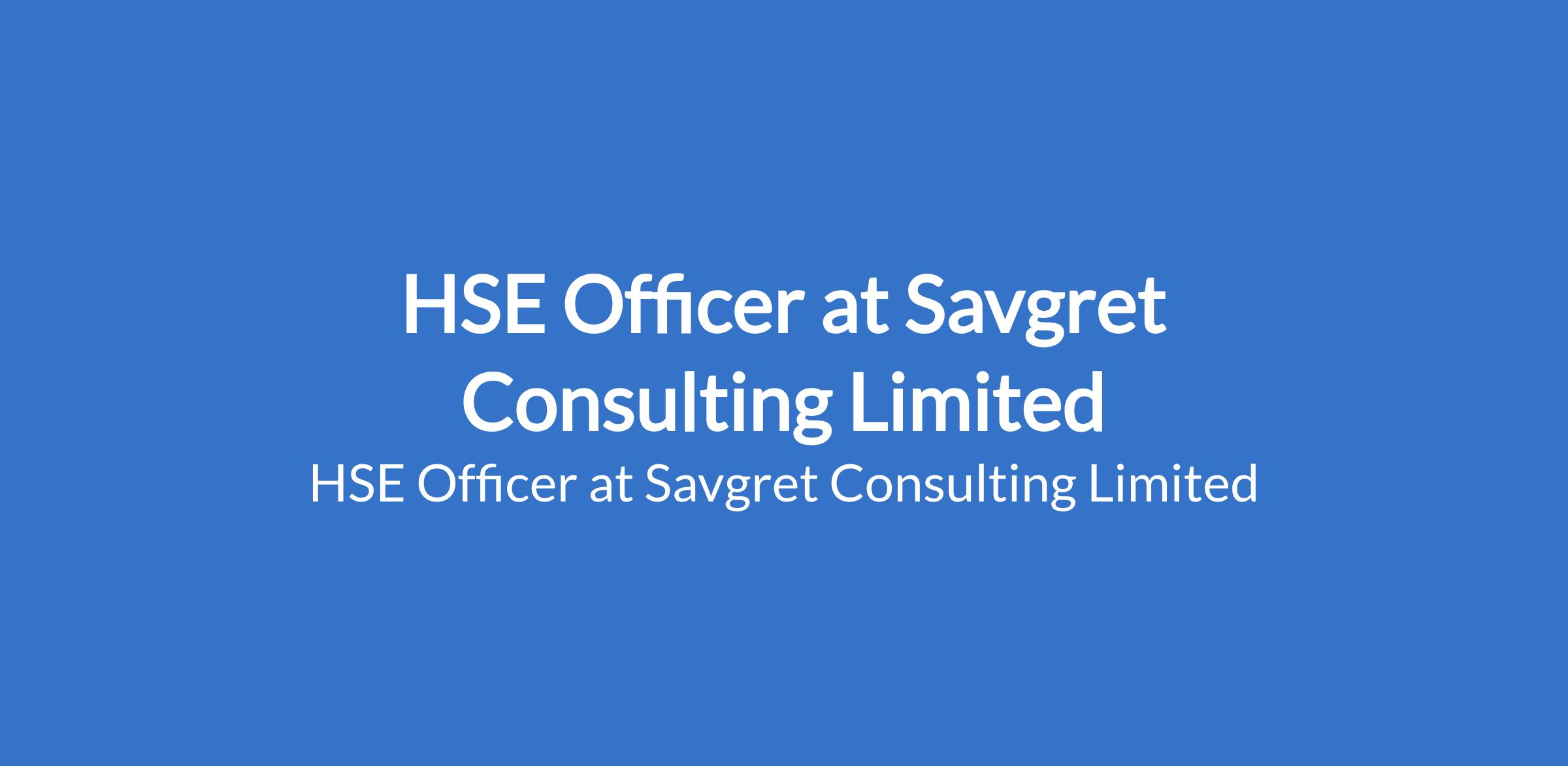 Savgret Consulting Limited is recruiting to fill the position of: HSE Officer. The position is located in Lagos State. Interested candidates should possess a Relevant certification(s) in Health, Safety, and Environment or similar field with years of working experience in the construction industry or similar high-risk environments is preferred.