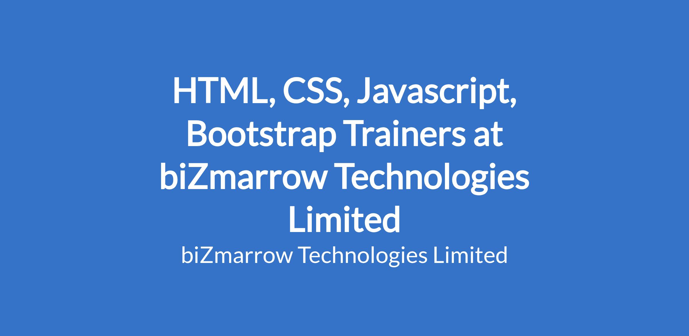 HTML, CSS, Javascript, Bootstrap Trainers at biZmarrow Technologies Limited