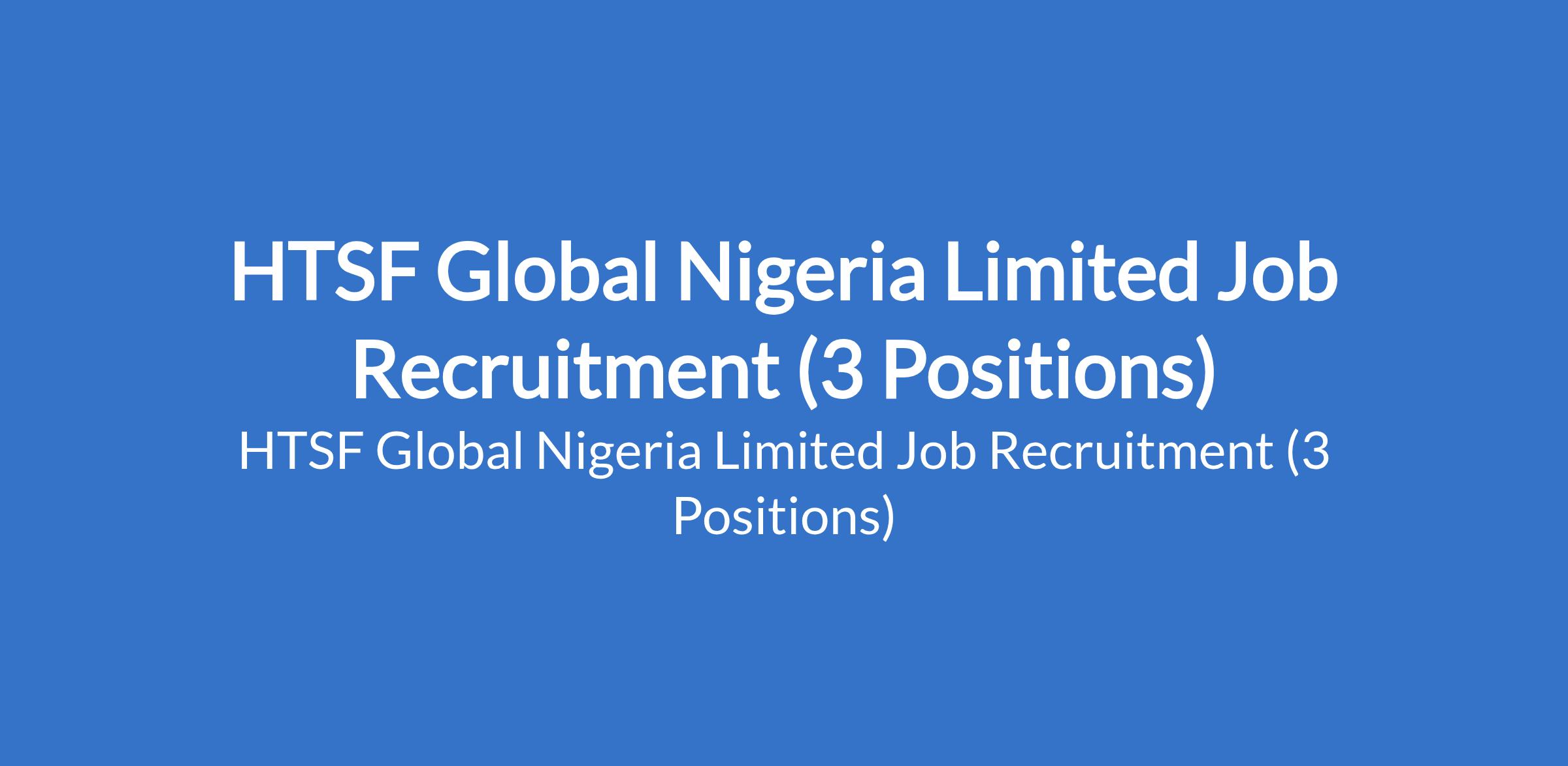 HTSF Global Nigeria Limited Job Recruitment (3 Positions)