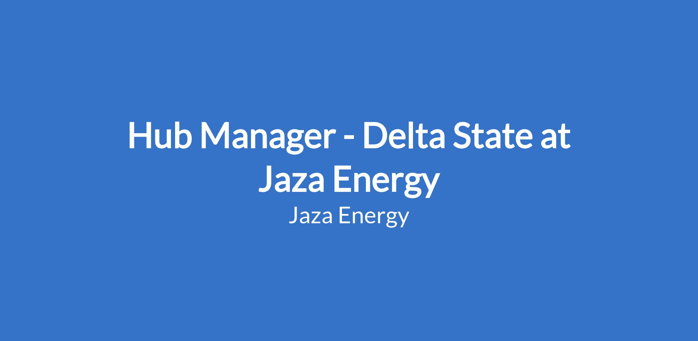 Hub Manager - Delta State at Jaza Energy