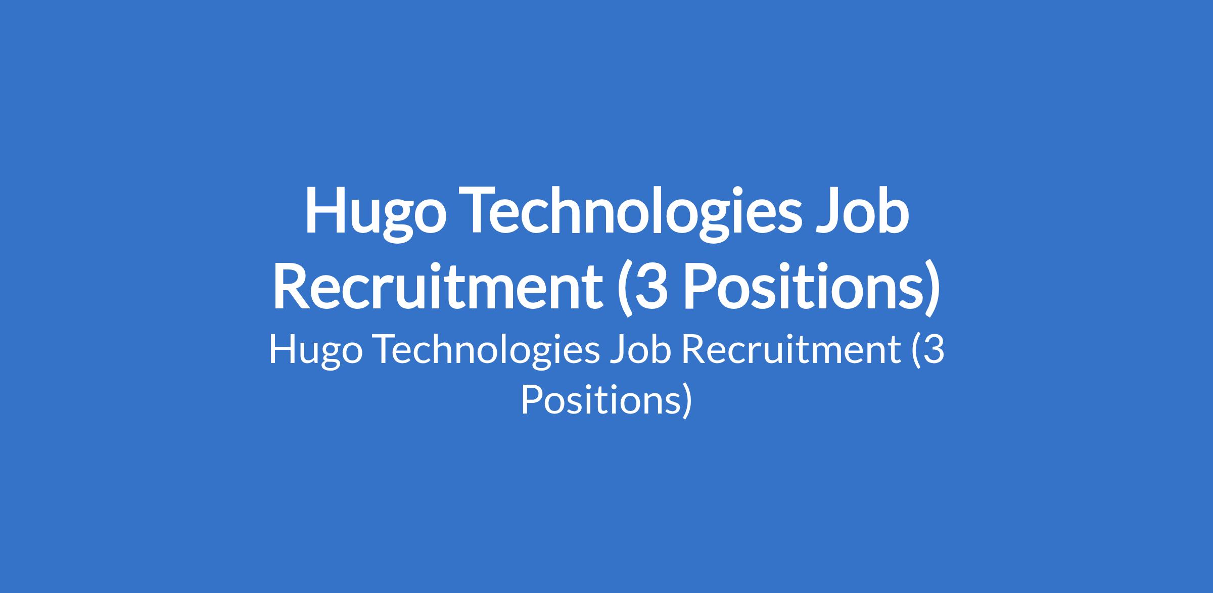 Hugo Technologies Job Recruitment (3 Positions)