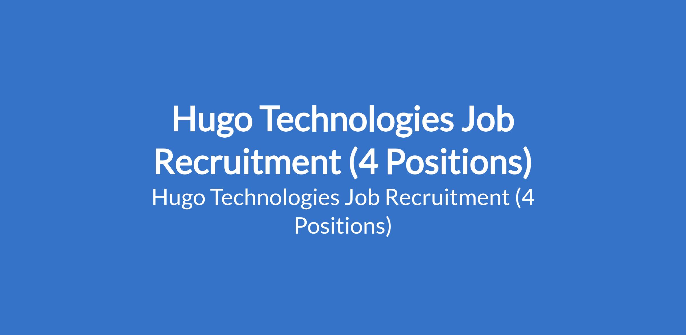 Hugo Technologies Job Recruitment (4 Positions)