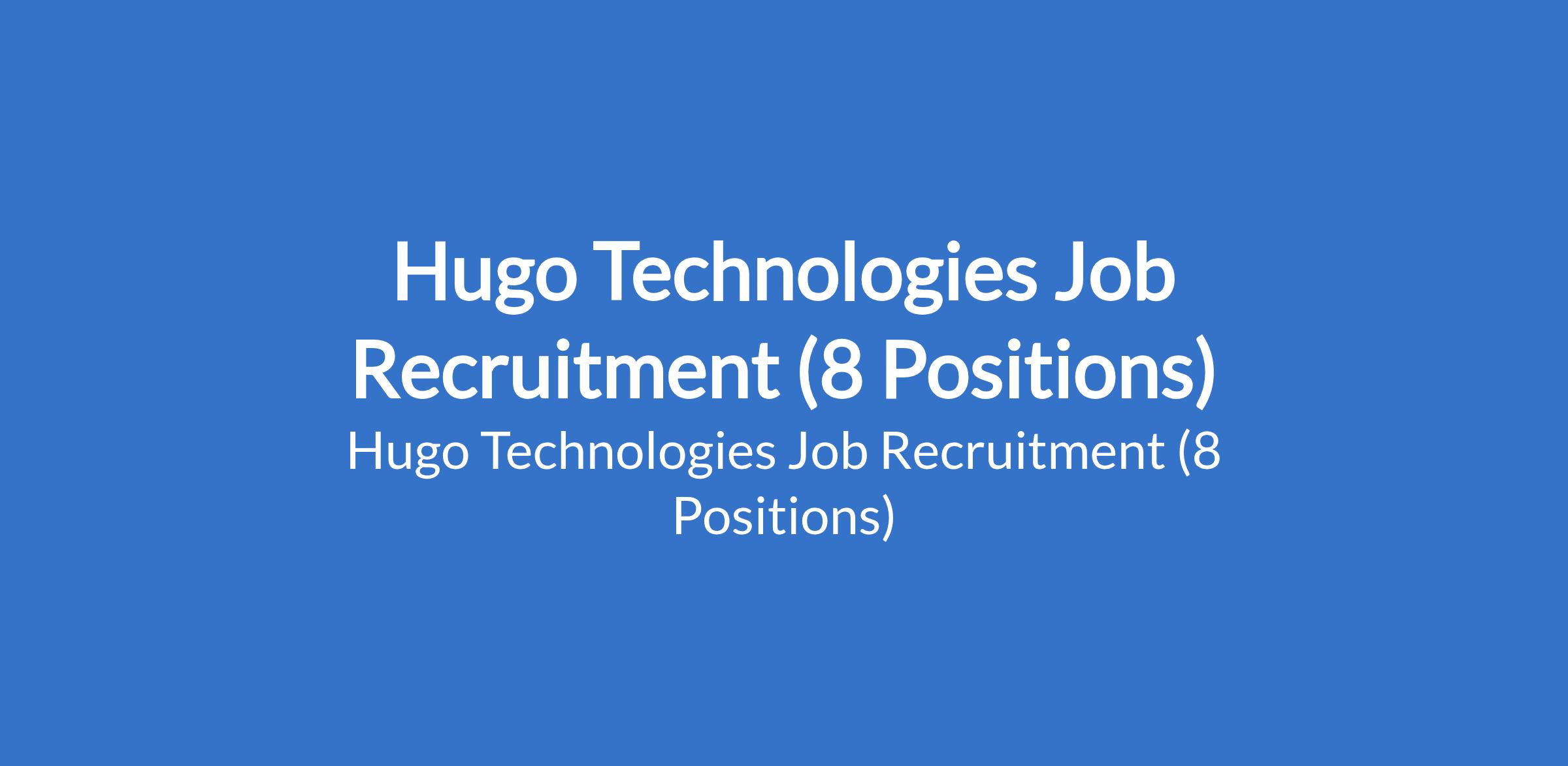Hugo Technologies is recruiting suitable candidates to fill the following positions: Manager, Change and Adoption - Generative AI Operations; DevOps Engineer - Product & Engineering; Manager - L&D, Generative AI Operations; Fullstack Engineer (Node.js / React) - Product & Engineering; Manager, Operational Excellence - Generative AI Operations; Solutions Architect - CX; and Wellbeing Coach (Clinical Psychologist).