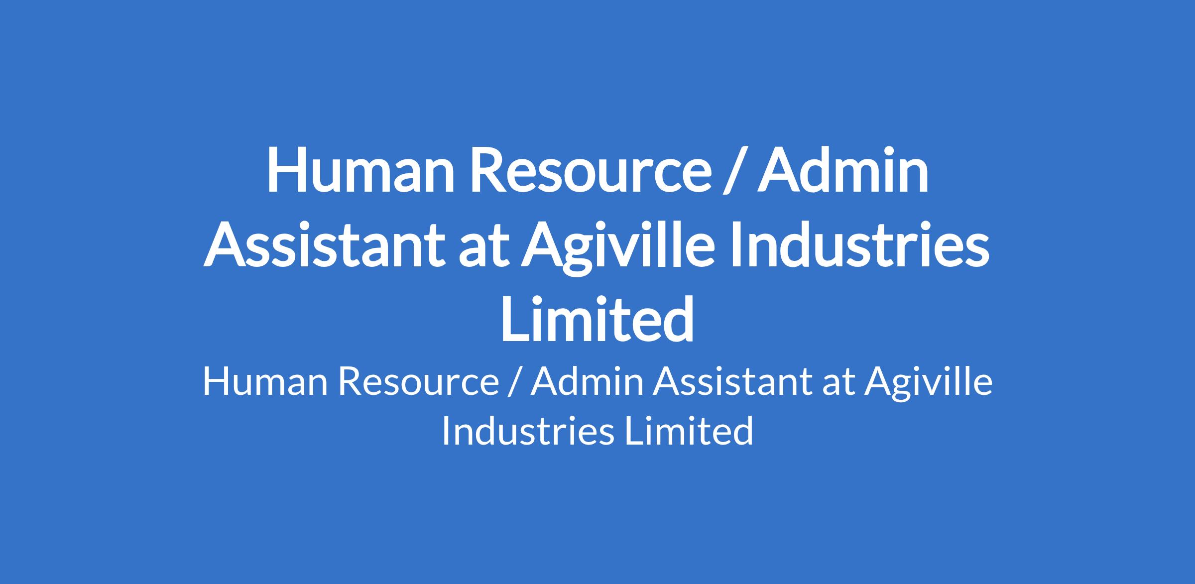 Agiville Industries Limited is recruiting to fill the position of: Human Resource / Admin Assistant. The position is located in Lagos State. Salary: N110,000 / month. Interested candidates should possess relevant qualifications with a minimum of 1 year experience as a hr/admin assistant.