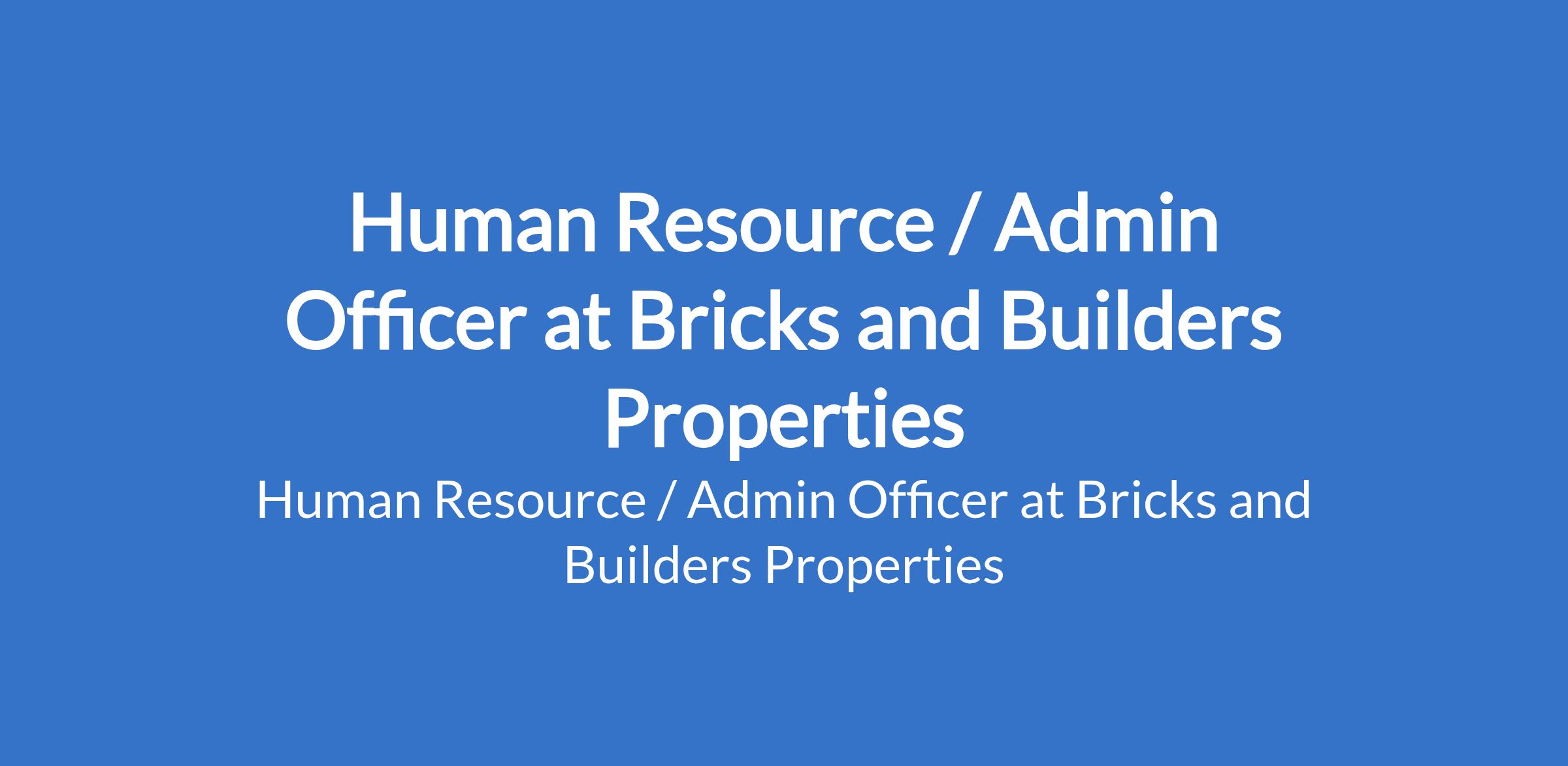 Human Resource / Admin Officer at Bricks and Builders Properties