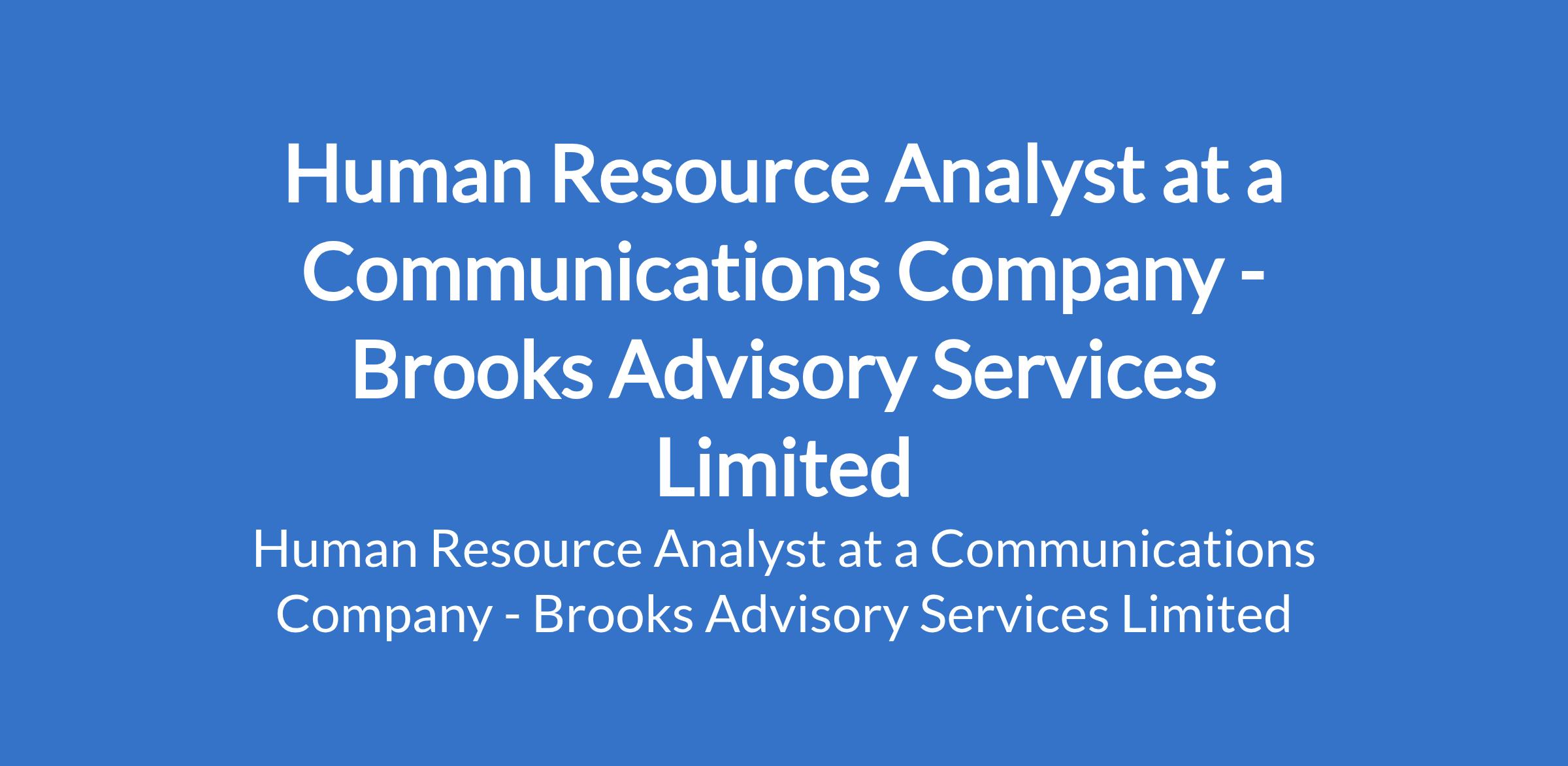 Brooks Advisory Services Limited - Our client, a communications company is recruiting to fill the position of: Human Resource Analyst. The position is located in Ikeja, Lagos State. The successful candidate will work on-site as the dedicated HR personnel for the restaurant, while working with Brooks Advisory Services Limited (BASL) to implement structured HR processes, policies, and performance systems. Salary: N200,000 / month. Interested candidates should possess a Bachelors Degree in Human Resources, Business Administration, or a related field with 2 4 years HR experience, preferably in hospitality, food service, or service-driven organizations.
