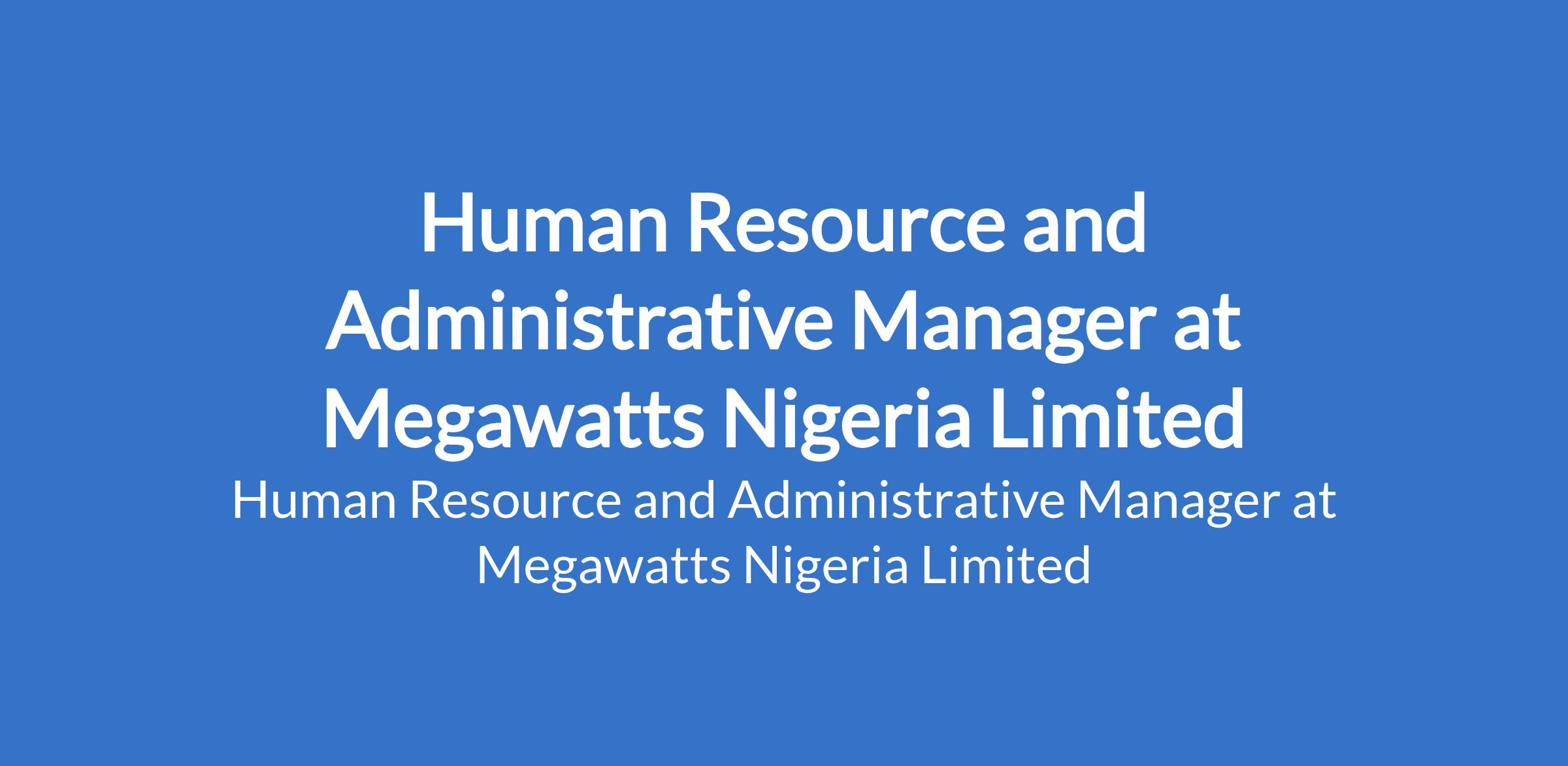 Megawatts Nigeria Limited is recruiting to fill the position of: Human Resource and Administrative Manager. The position is located in Lagos State. Interested candidates should possess a Bachelor's Degree in a Human Resource-related field with at least 10 years experience.