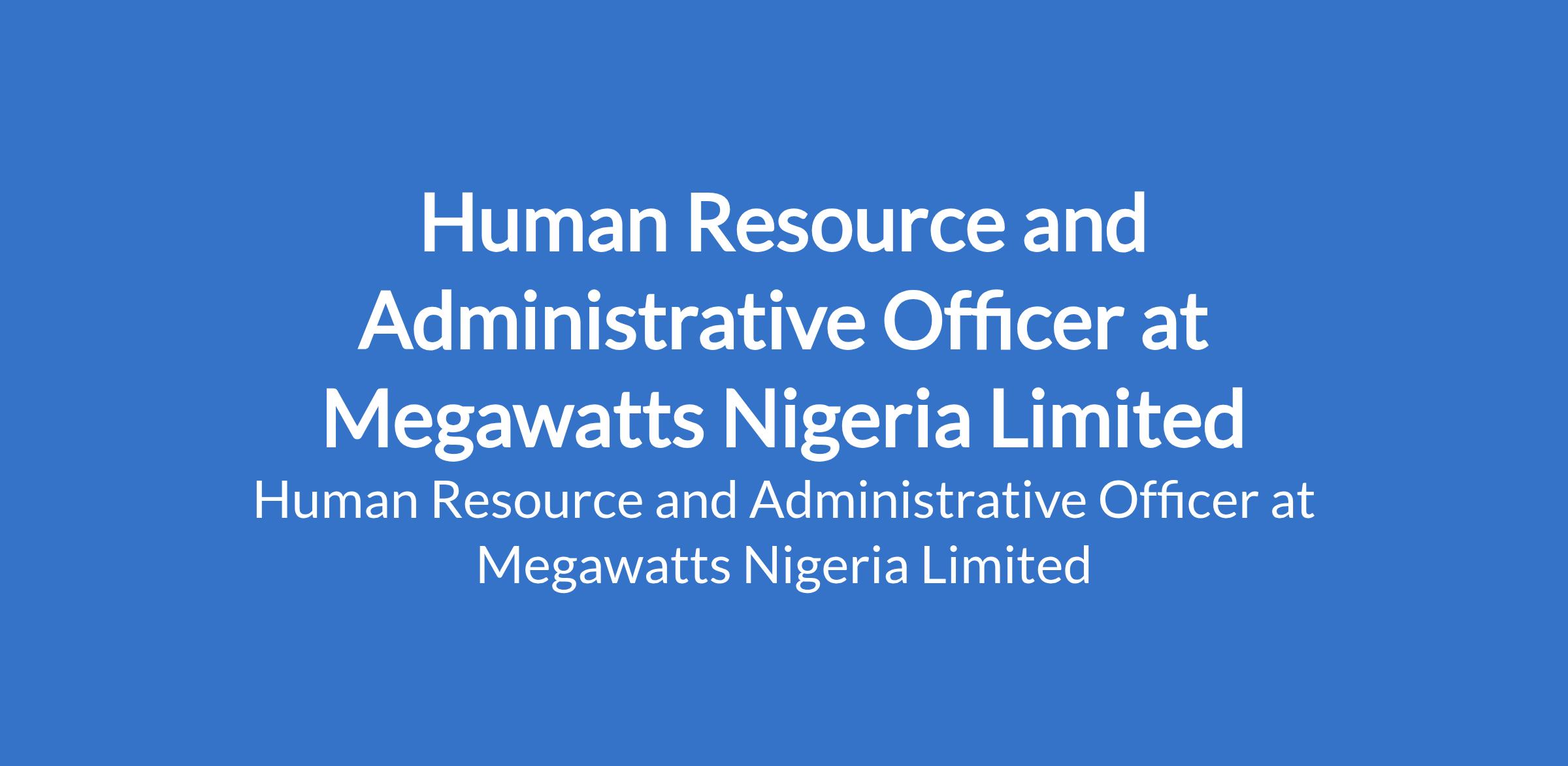 Megawatts Nigeria Limited is recruiting to fill the position of: Human Resource and Administrative Officer. The position is located in Lagos State. Interested candidates should possess a Bachelor's Degree / HND in Human Resources, Business Administration, or related field with 3-5 years HR/Admin experience, preferably in construction or engineering industry.