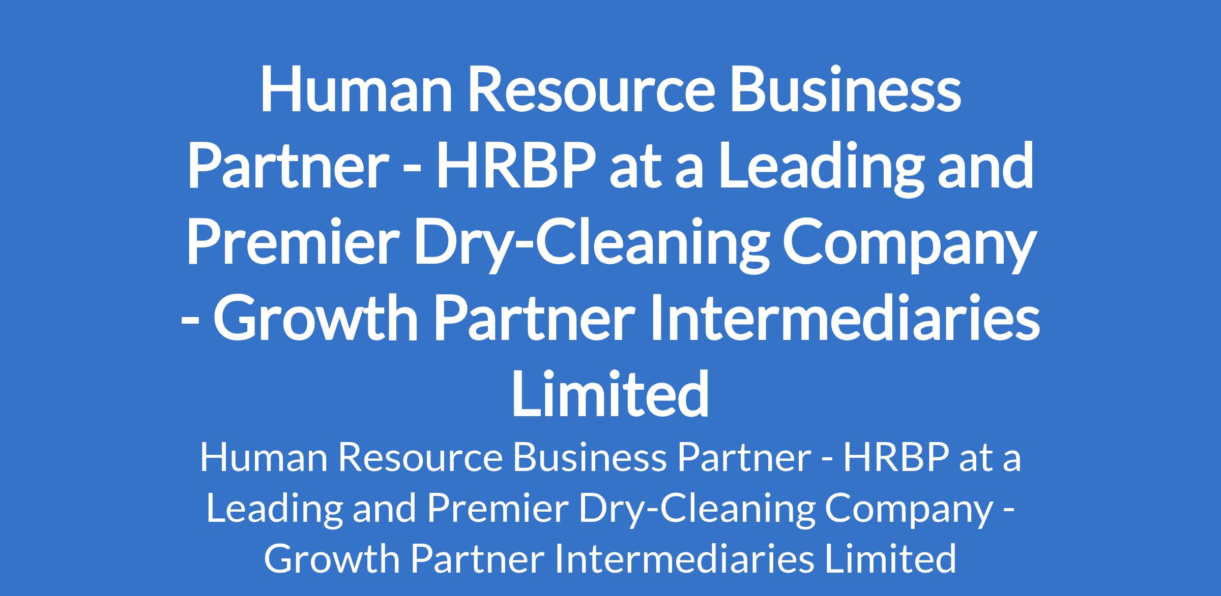 Growth Partner Intermediaries Limited - Our client, a Leading and Premier Dry-Cleaning Company is recruiting to fill the position of: Human Resource Business Partner - HRBP. The position is located in Lekki Phase 1, Lagos State. Salary: N300,000 - N350,000 monthly. Interested candidates should possess a Bachelors Degree in Human Resource Management, Business Administration, Communications, or a related field with a minimum of 5 years experience in human resource management.