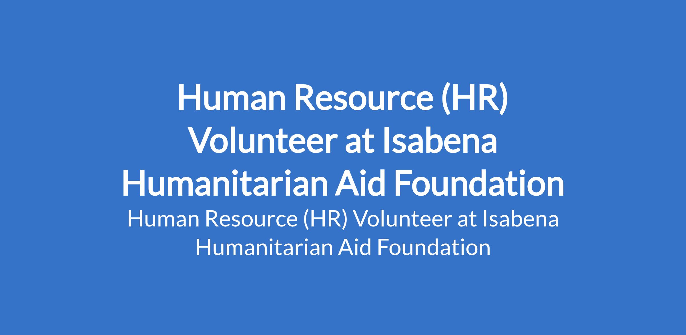 Human Resource (HR) Volunteer at Isabena Humanitarian Aid Foundation